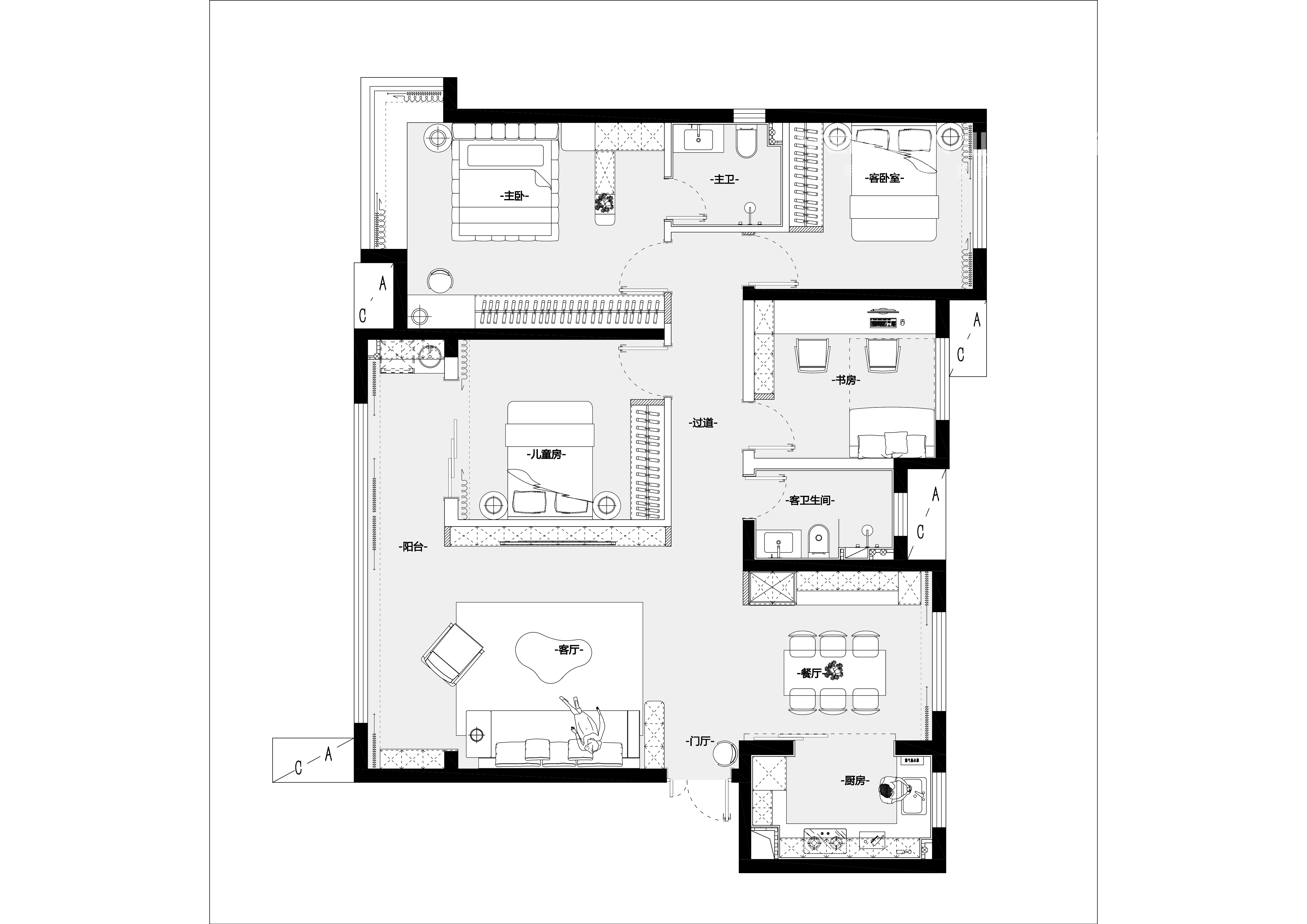 小区:雁熙云著 面积:150㎡ 户型:四居 风格:现代简约风格