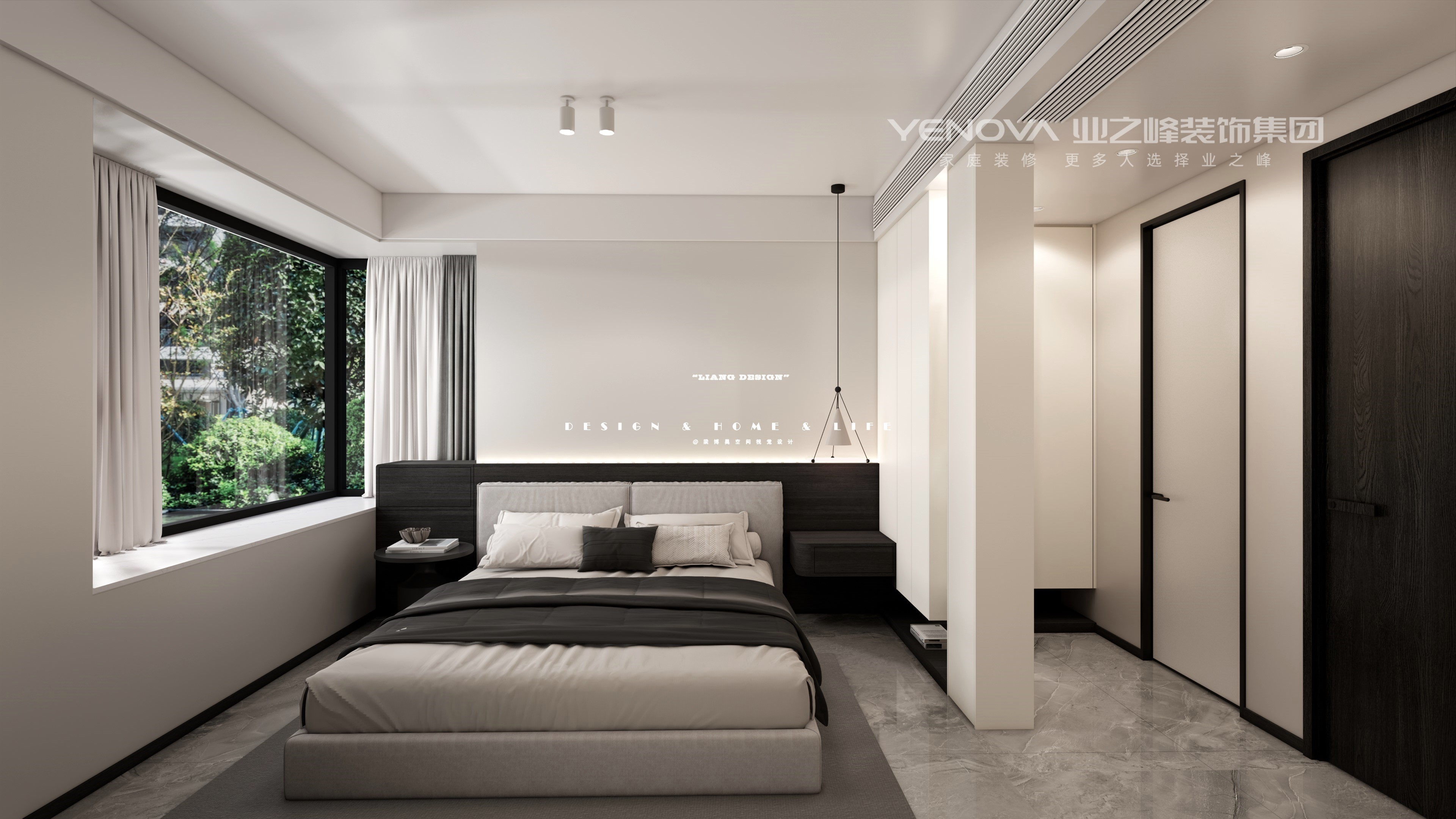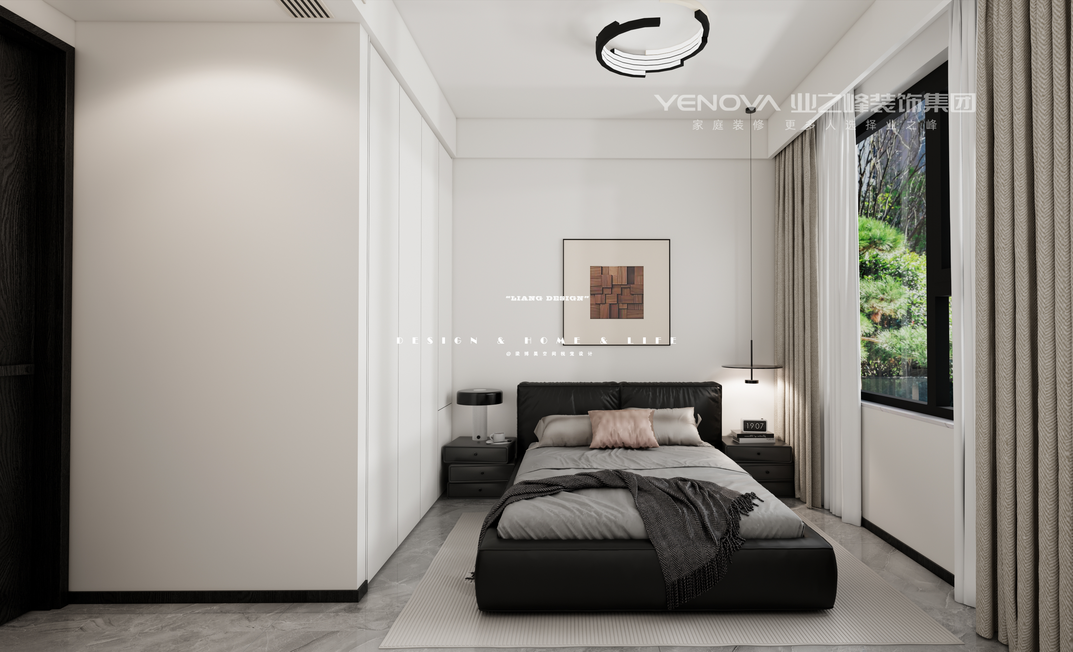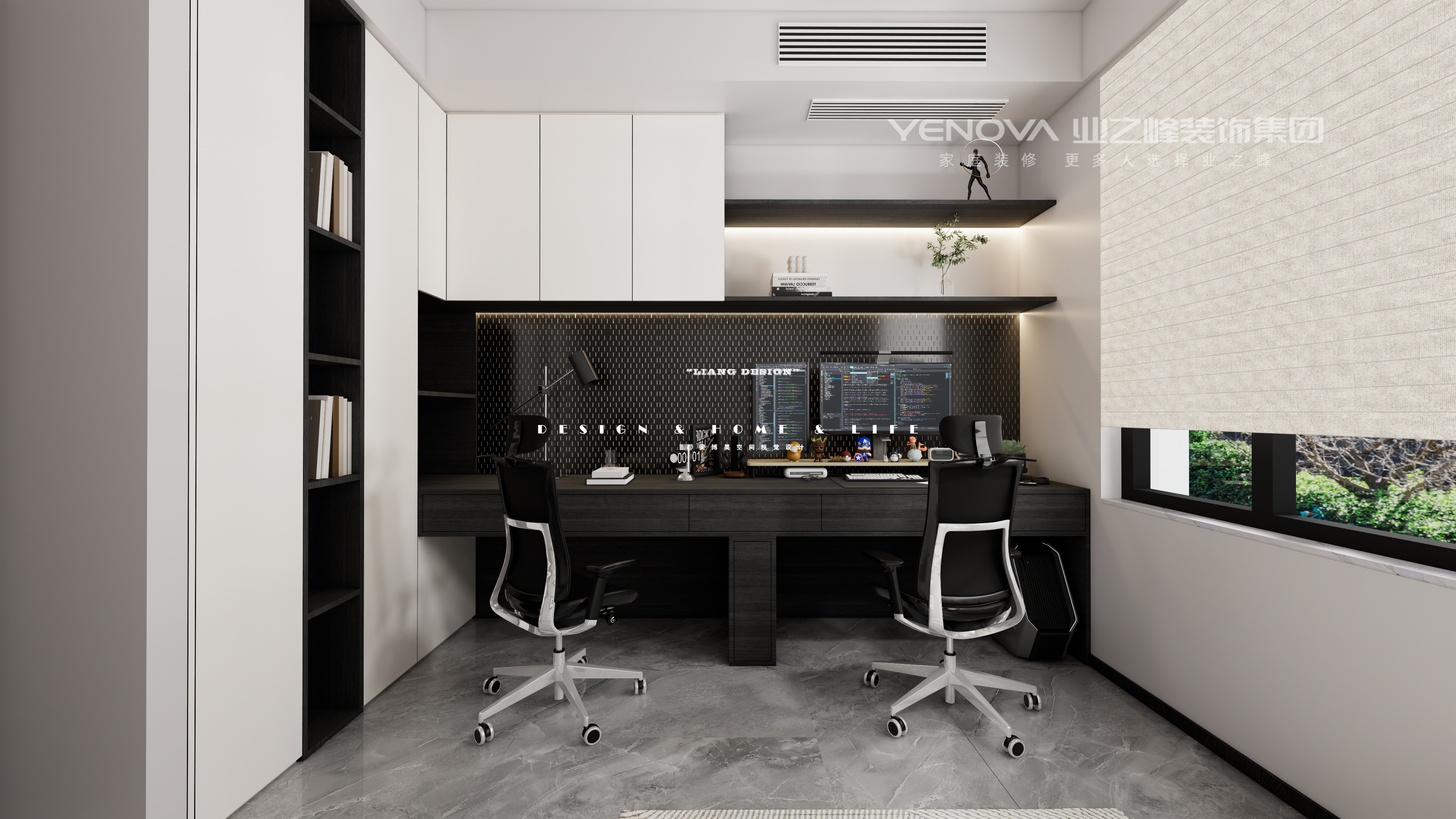 私密区注重静谧与功能性:卧室以柔和中性色为主,简洁床头造型、嵌入式灯光与充足收纳柜,营造舒适休憩氛围;书房打造双人工作区,定制柜体满足储物,墙面装饰与局部照明结合,构建高效且富格调的办公场景。