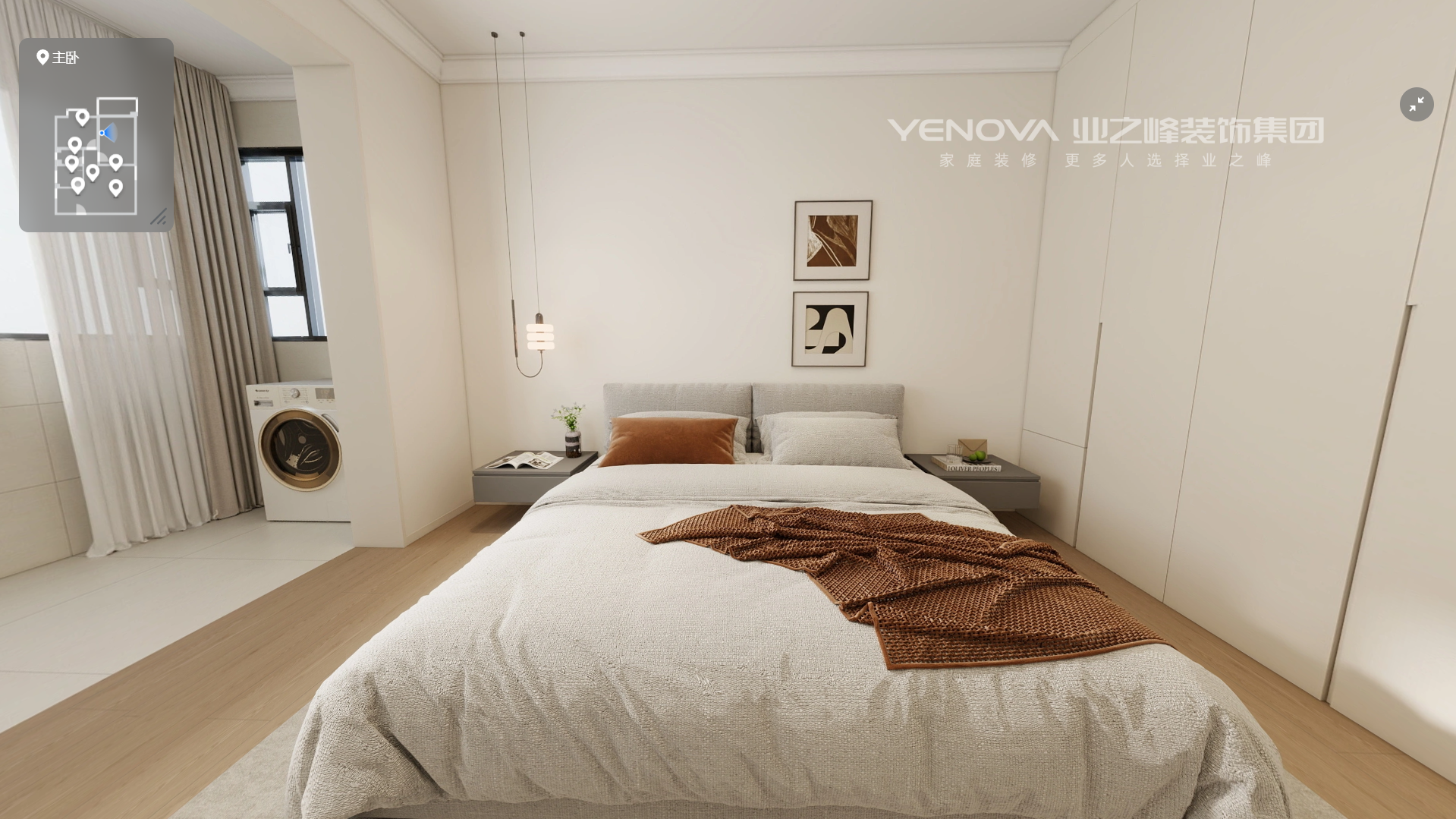 本空间以“现代简约”风格为设计核心,遵循 “空间序列优化、功能复合集成、细部精致营造” 原则,构建一体化居住系统。 采用开放式空间组织模式,将入户、客餐厅进行通联设计,将现代简约的利落线条与自然温润的材质相融合,营造舒适治愈的居住氛围。使客餐厅成为兼具社交聚会、日常休憩等复合功能的家庭核心场景。主次卧空间遵循动静分区原则,保障休憩行为的私密性;主卧集成洗衣功能模块,强化空间实用性。