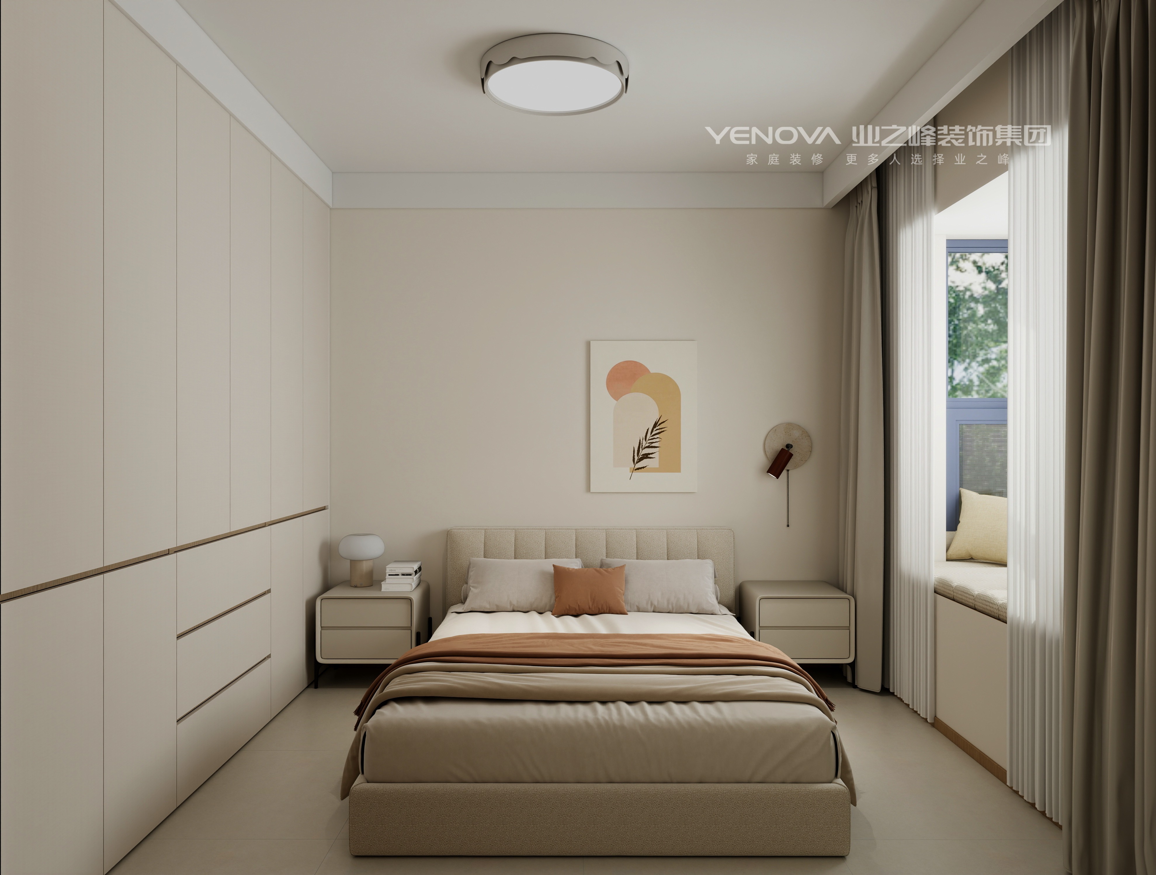 同样,卧室也是简简单单,搭配客餐厅同色系的木色设计,及软装的搭配,为屋主带来一个舒适轻松的睡眠空间,让居家生活,成为一种享受。