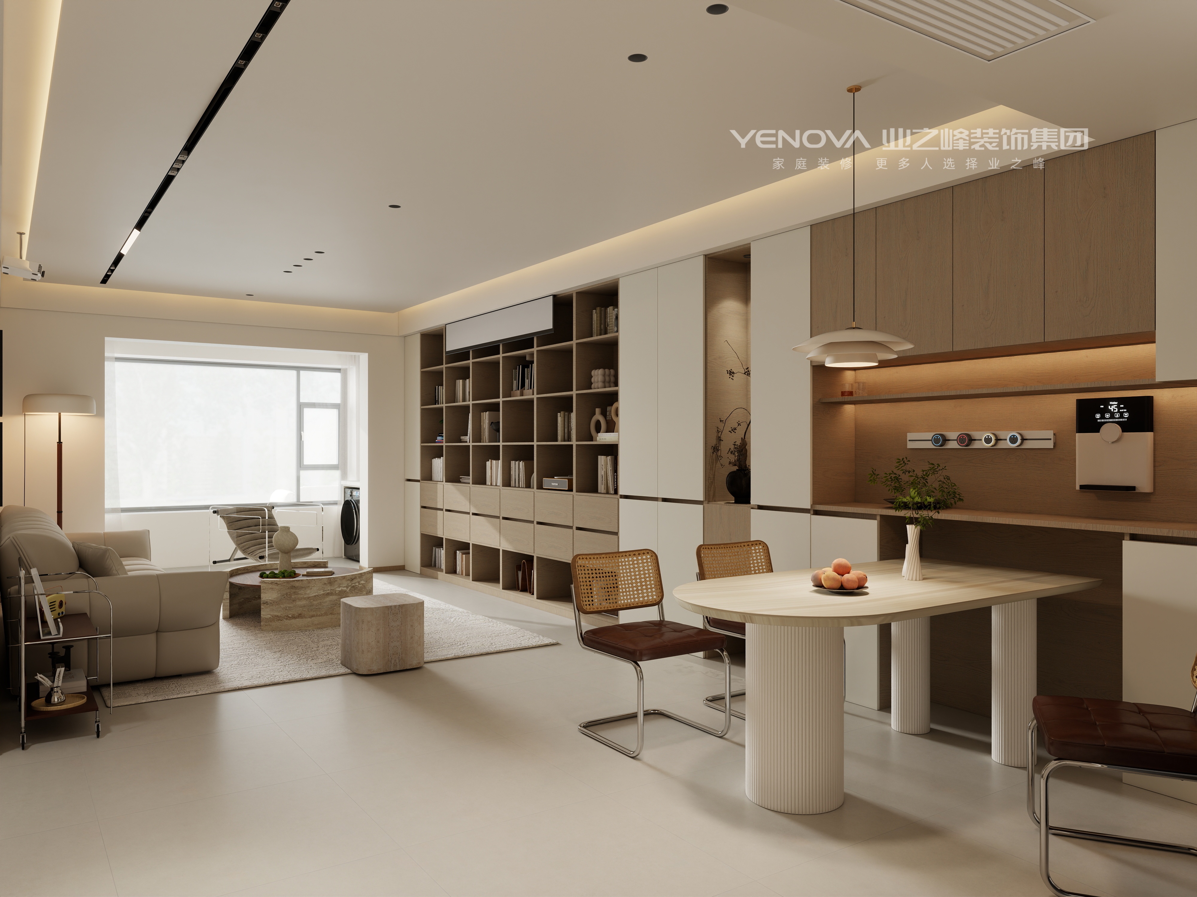 在本案的设计中,客餐厅的布局注重简洁和流畅性,强调空间的整洁和无冗余的设计。整体以木质家具为主,追求简洁、舒适、实用的设计风格的同时,注重空间的流动感和自然光线的运用,从而营造出明亮、通透、舒适的空间氛围。