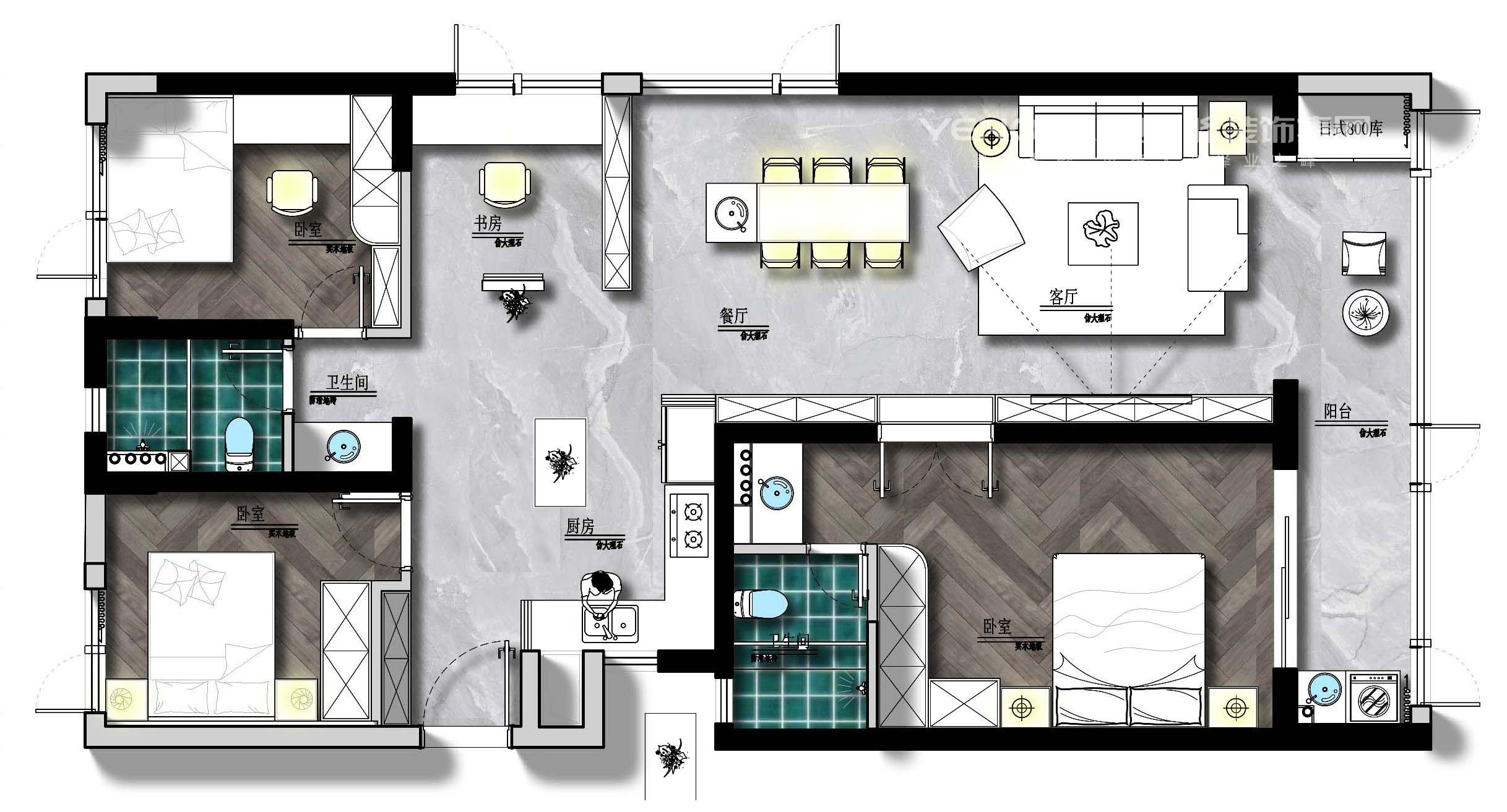 小区:武汉润府 面积:125㎡ 户型:三居 风格:中古风格