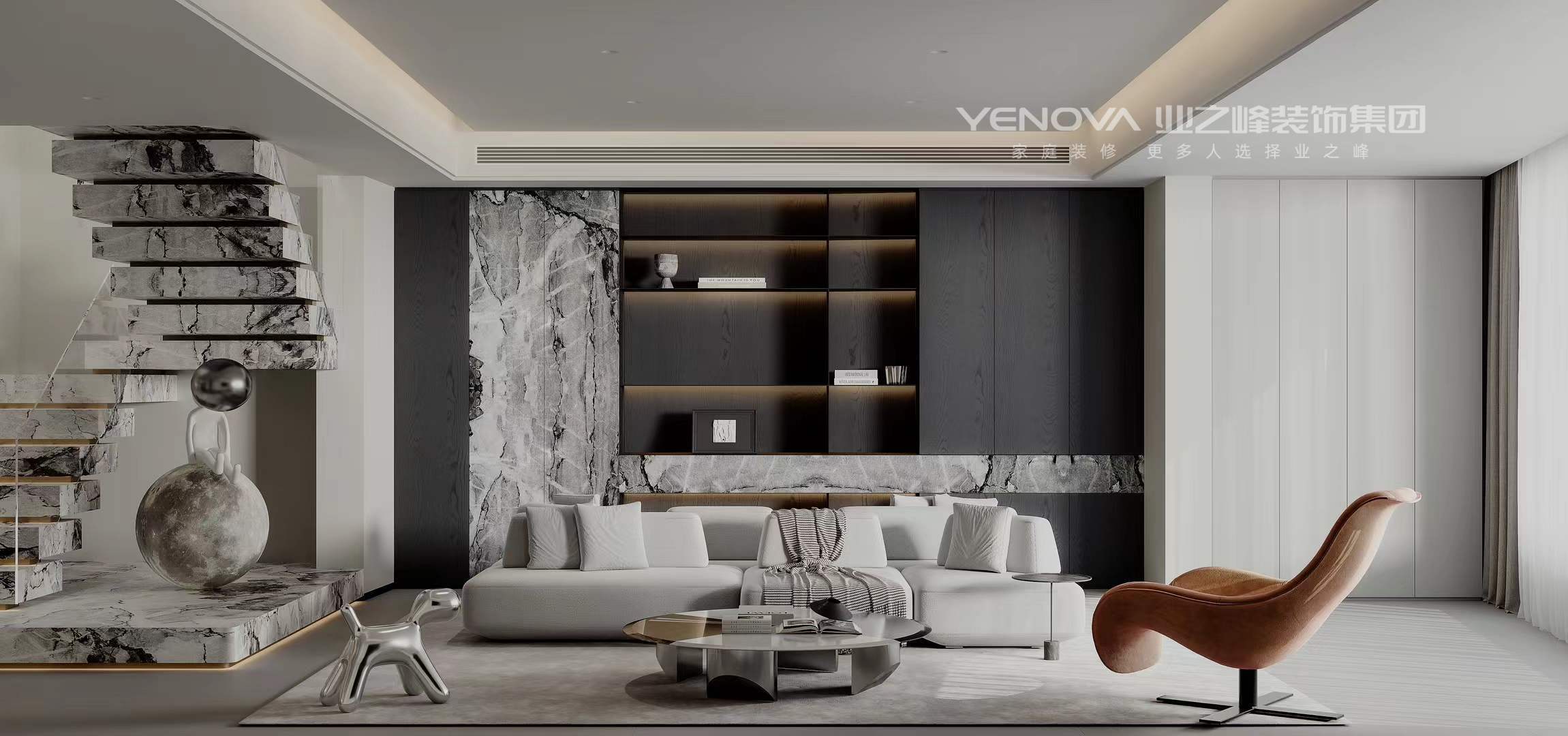 小区:高科麓湾 面积:200㎡ 户型:三居 风格:意式极简
