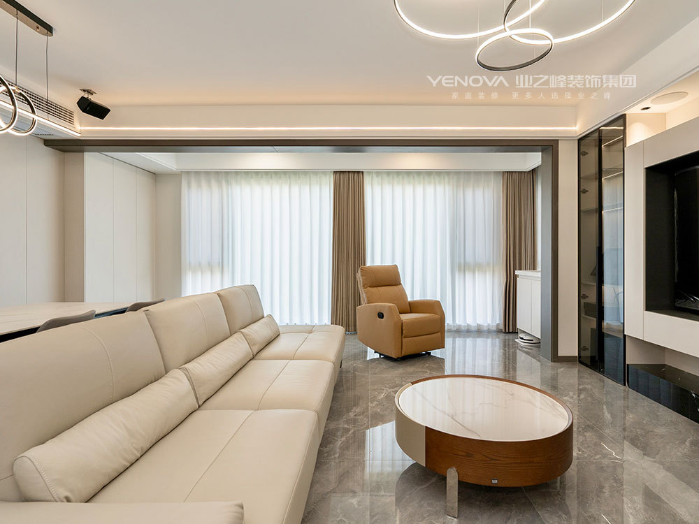 客厅通铺瓷砖与阳台打通,整体视觉显大,采光性更好!