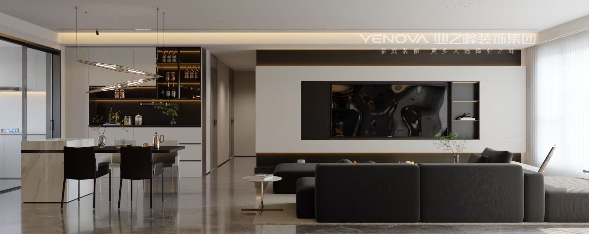 本方案以黑色、棕色和白色为主色调,通过这些颜色打造出安静且高级的主色调环境,吊顶以无主灯吊顶暗藏灯带和射灯打造光的氛围感,营造柔和的氛围,搭配一些吊灯更加有了意式氛围。