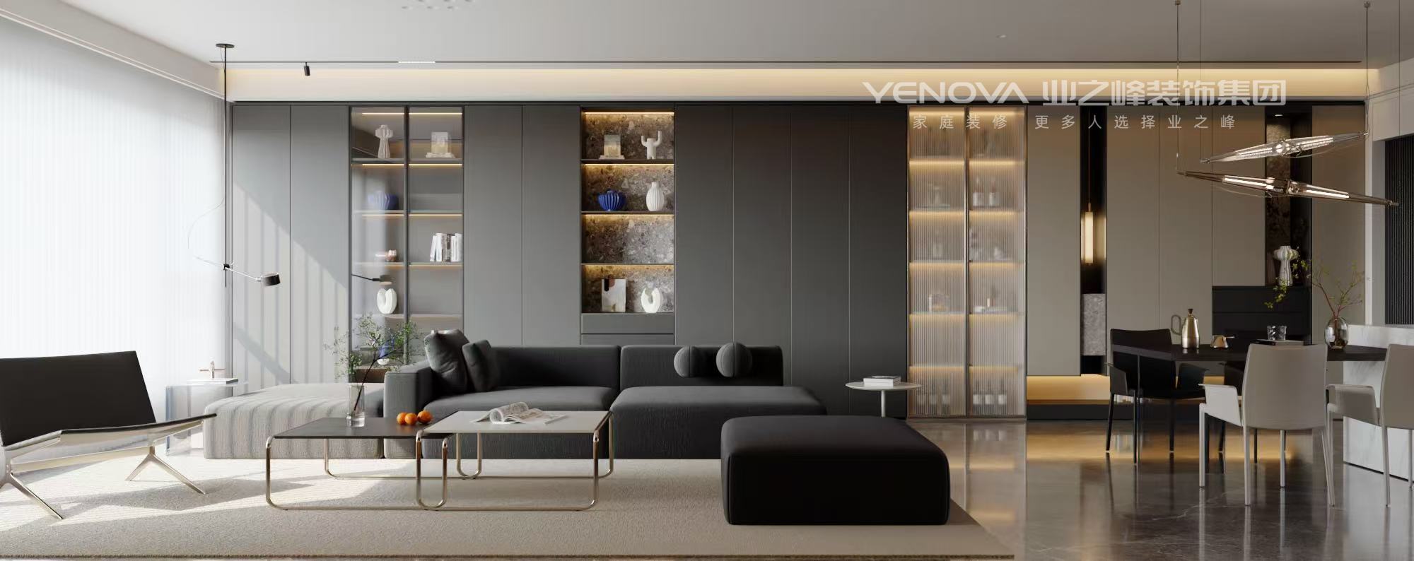 本方案是一个4室2厅1厨2卫的一个平层住宅,业主要求追求简约高尚的设计风格对意式的喜好偏高,意式轻奢风格为主题主要以意大利设计风格和轻奢理念融合,既有精致感又有舒适感,通过材质、色彩搭配、线条的把控,营造出高雅,大气且舒适的居住环境,让设计中简约而优雅又不失温度