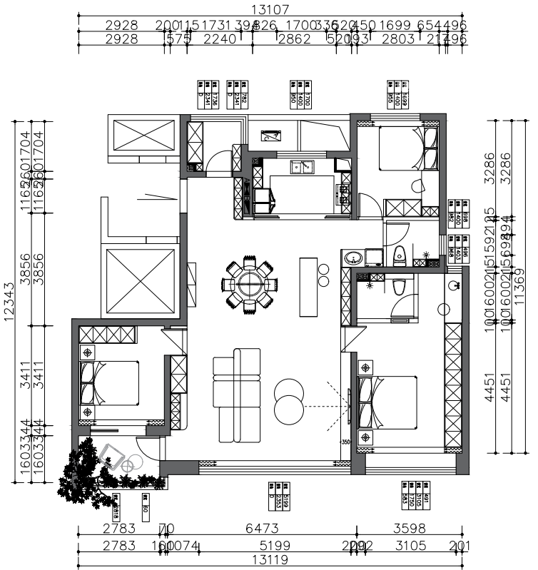 143㎡平层原木风格海棠三章