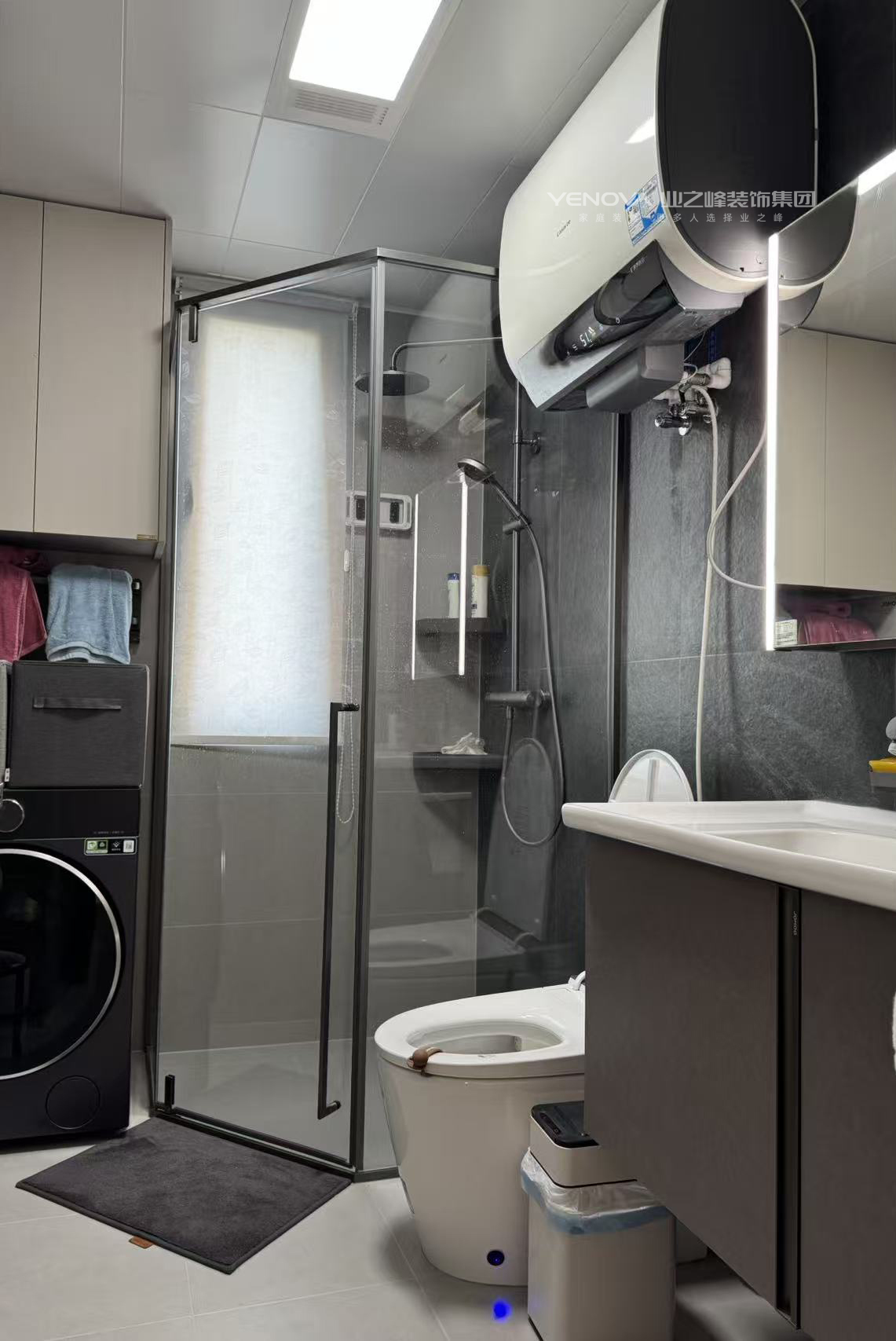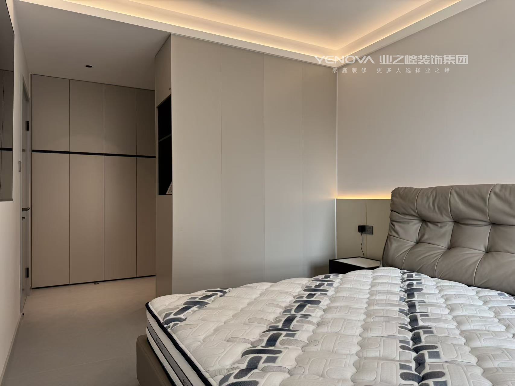 卧室:衣帽间做隔断,既能避免主卧对床的布局,同时还可以拥有步入是衣帽间,动静分离、睡眠质量也会提升,衣柜做成双面储物柜的同时还内嵌了一个洗衣机。同时最大限度的保证了私密性,去掉了多余复杂的动线,早晚洗漱更衣的动线都流畅起来。