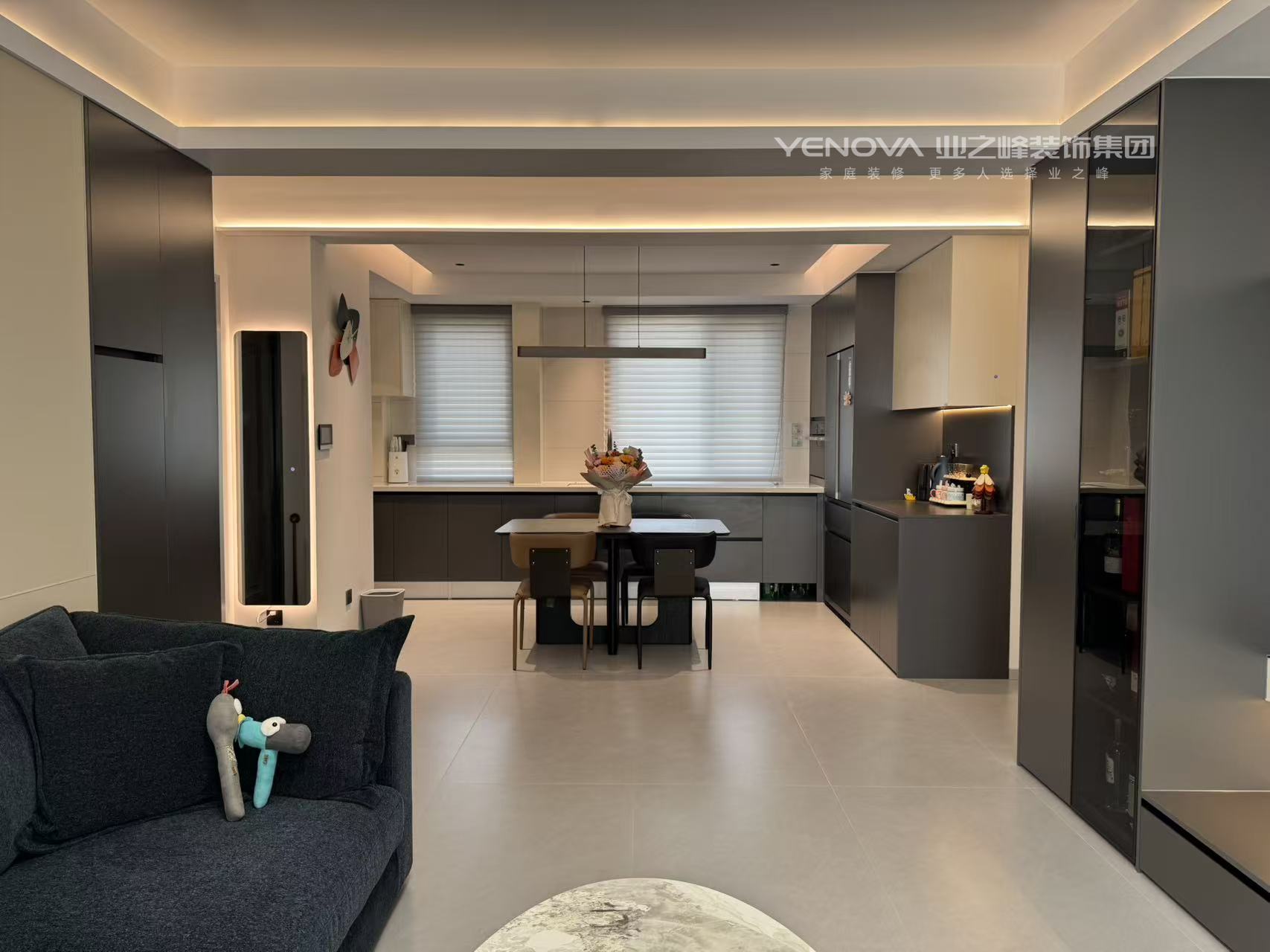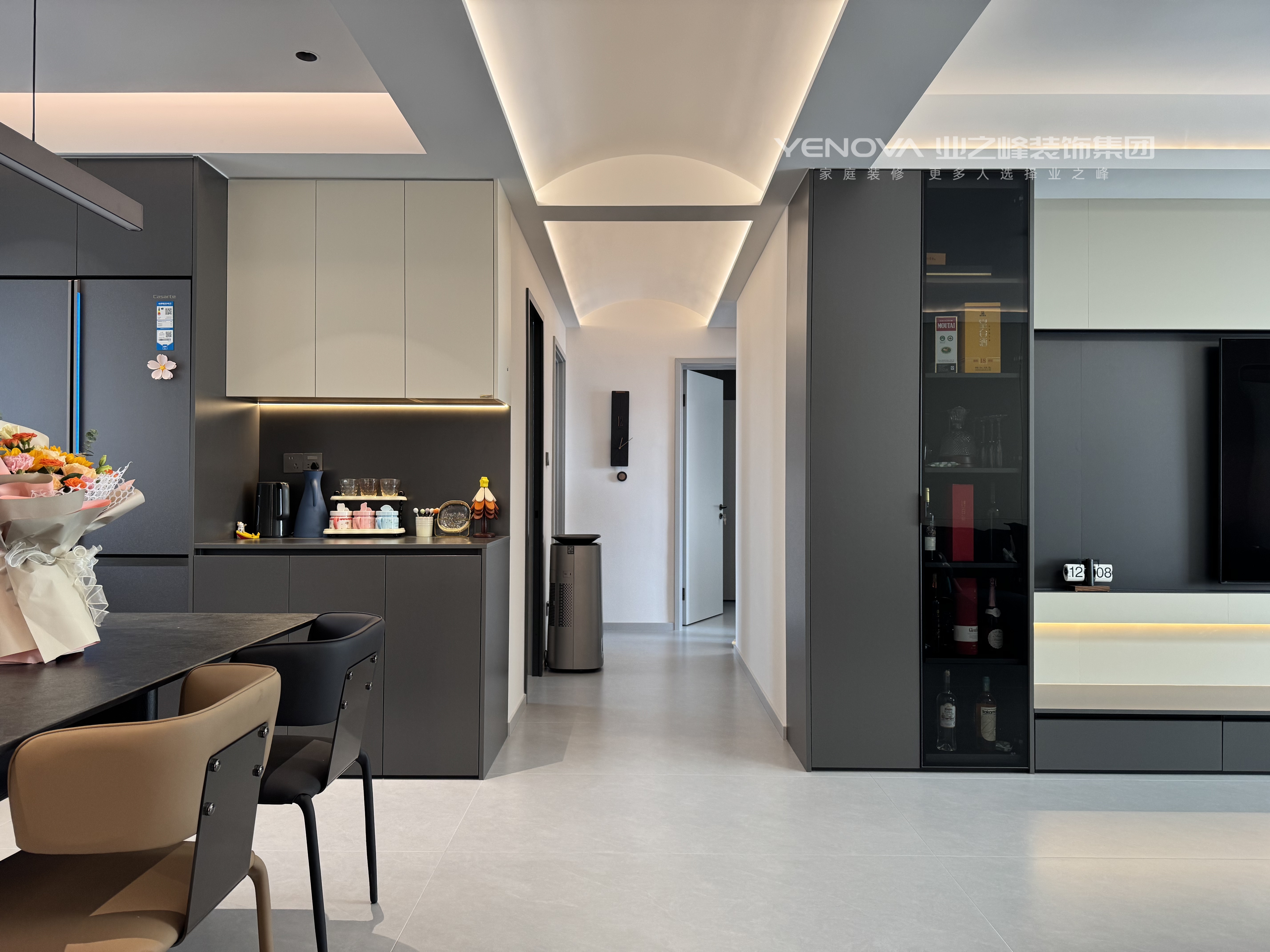客餐厨:将客厅、餐厅、厨房融合在一起的设计概念。可以提升利用效率、增加互动性和舒适度,创造流畅的动线,并适应多功能需求,使整个空间更加开放、灵活和功能性齐全,提升业主的品质和舒适度。空间的打通也使空间看起来更加的通透,打破传统的隔间设计,使得动线更加的流畅。不同区域之间的色彩搭配可以相互呼应,创造出整体和谐的美感。