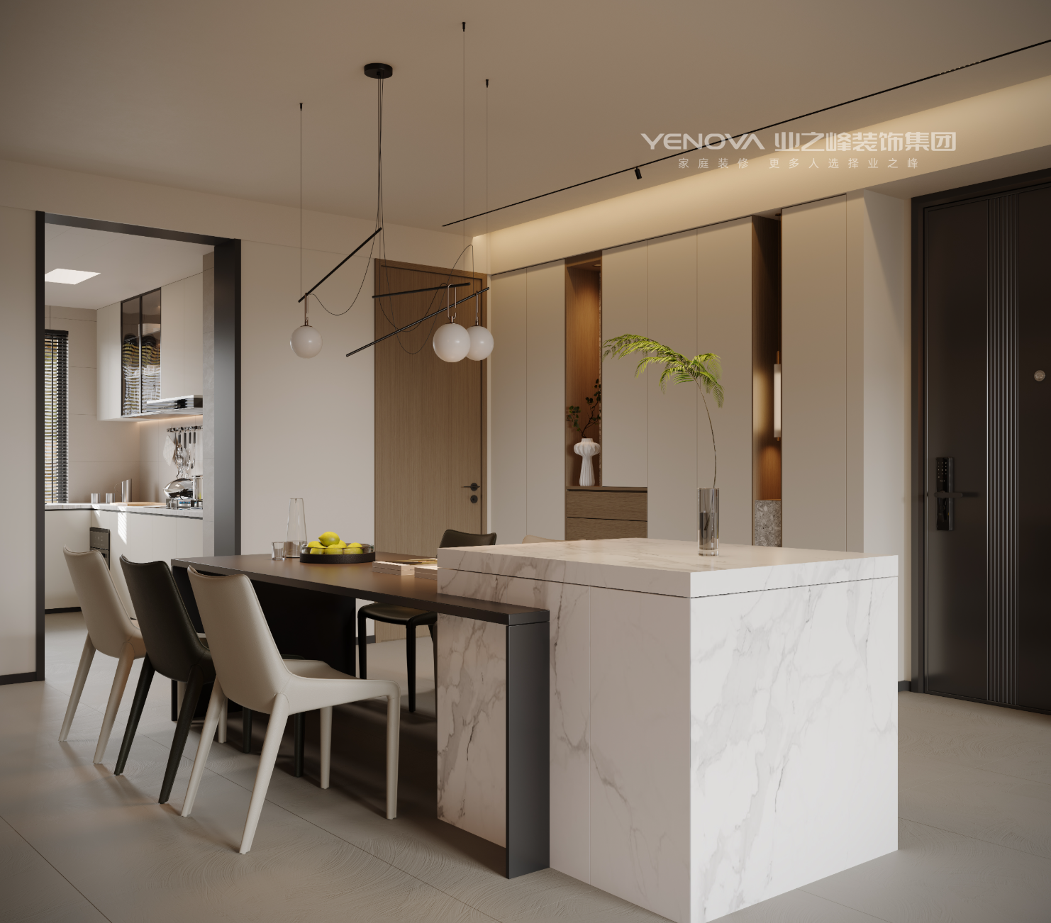 开放通透:采用开放式客餐厅一体化设计,减少不必要的隔断,让空间流动起来,显得大气宽敞。