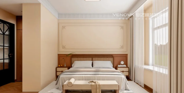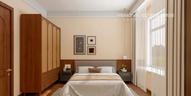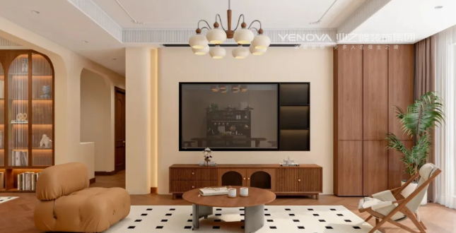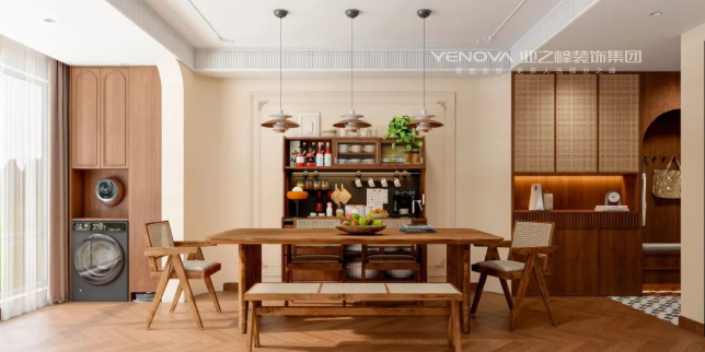 中古风用色最大的特点,就是大胆且沉稳。之所以说大胆,是因为色彩多、面积大,大批量采用活泼生动的色彩,敢于用色以及难度较高的撞色搭配。之所以说沉稳,是因为采用的都是高纯度偏暖的色调,给人一种安稳、沉静的视觉感受。在本案中,温润的中古风,恰如其分地融合了岁月的质感与生活的温度。在空间里找到平衡点,让木质肌理与暖调灯光交叠出静谧氛围,让每一件生活小事都被时光记住!