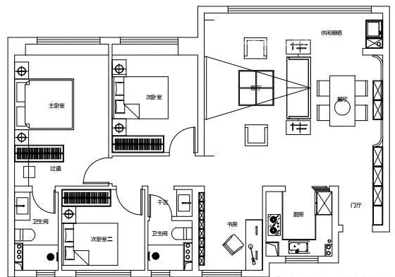 客餐厅是横厅式布局,打破了传统竖厅的空间