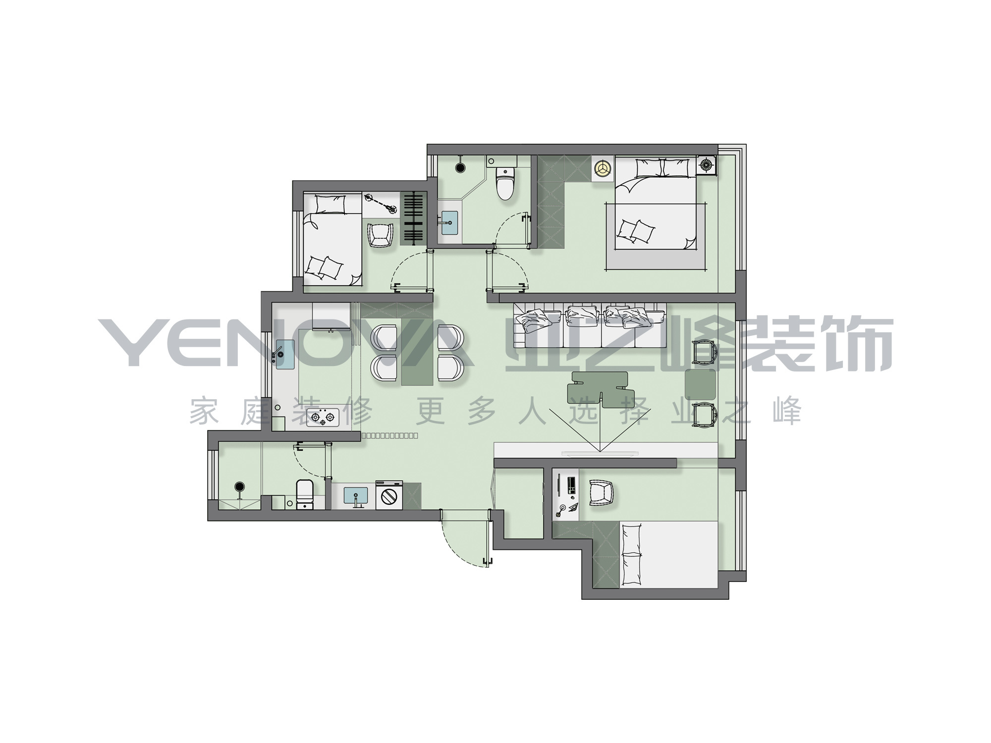 (主卧)以 “睡眠区” 为核心,将床置于空间中最安静、采光适中的位置(避免正对门窗或空调出风口),确保睡眠不受外界干扰。床的两侧预留至少 60cm 宽的通道,方便上下床与日常活动。