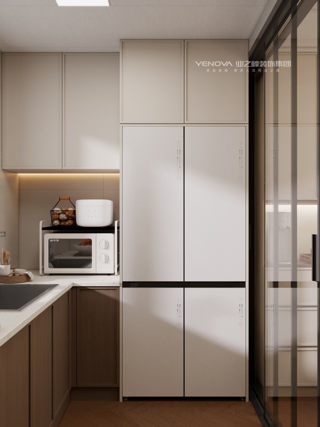 (客餐厅)采用开放式布局,打破传统客厅与餐厅的墙体阻隔,让两个空间相互贯通、视觉延伸。这种布局不仅能提升空间的通透感,减少压抑感,还能增强家庭成员之间的互动性 ;