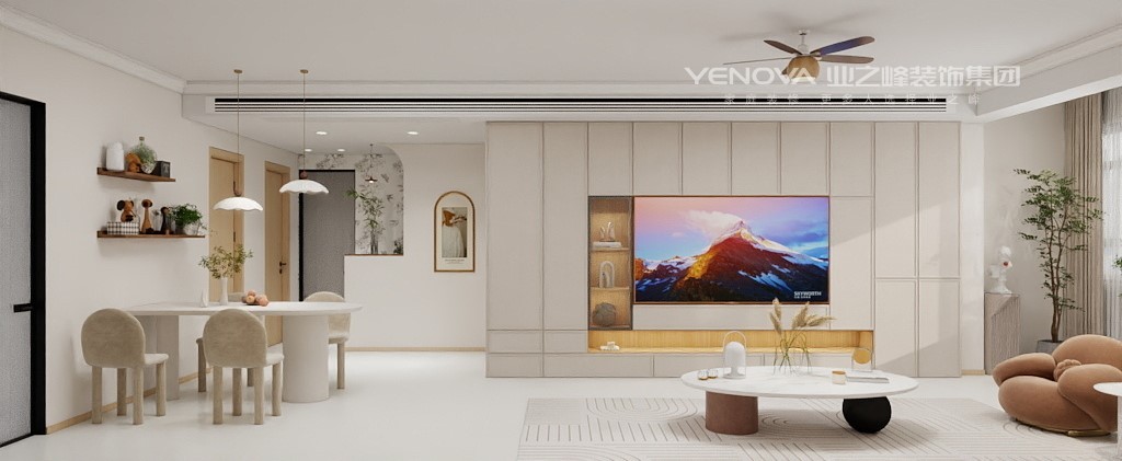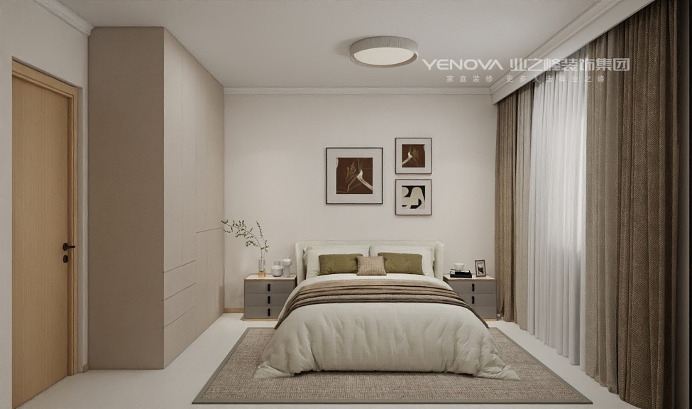 业主是一对年轻夫妻,还没有小孩,整个风格以简单大气为主,业主喜欢整体通透明亮,同时希望家中很温馨有质感,所以,本套案例围绕现代简约风格以及暖色调为主,整体是一套户型比规整的形状,卧室客厅餐厅分开布局,整体动静分离,整体采用暖白以及浅灰色为主,同时灯的造型以及风格明显,既有装饰性又有实用性,使室内氛围感十足,整个空间精致又有和谐,契合整体的风格,全房采用暖色的瓷砖铺贴,使整个空间清新稳重,客餐厅家具风格鲜明而大气,电视背景墙上简单大气,使得空间设计感十足,落地柜实用,美观且更加实用。色调统一使得空间通透感十足,客餐厅分体布局,两个空间互不打扰,空间利用率高,主卧是以中性色调为主,、整体家具搭配使人感受到安静和舒适,让人身处空间就能感受到放松与享受。次卧简介大方,布局使得空间利用率达到最高,现在作为父母的房间来使用,后期作为孩子的房间。另一个房间作为书房和整体衣帽间使用,满足客户在家办公的需求。房间内整体采用的灯具精美大方,契合整体的风格,同时又满足了实用以及装饰的作用。