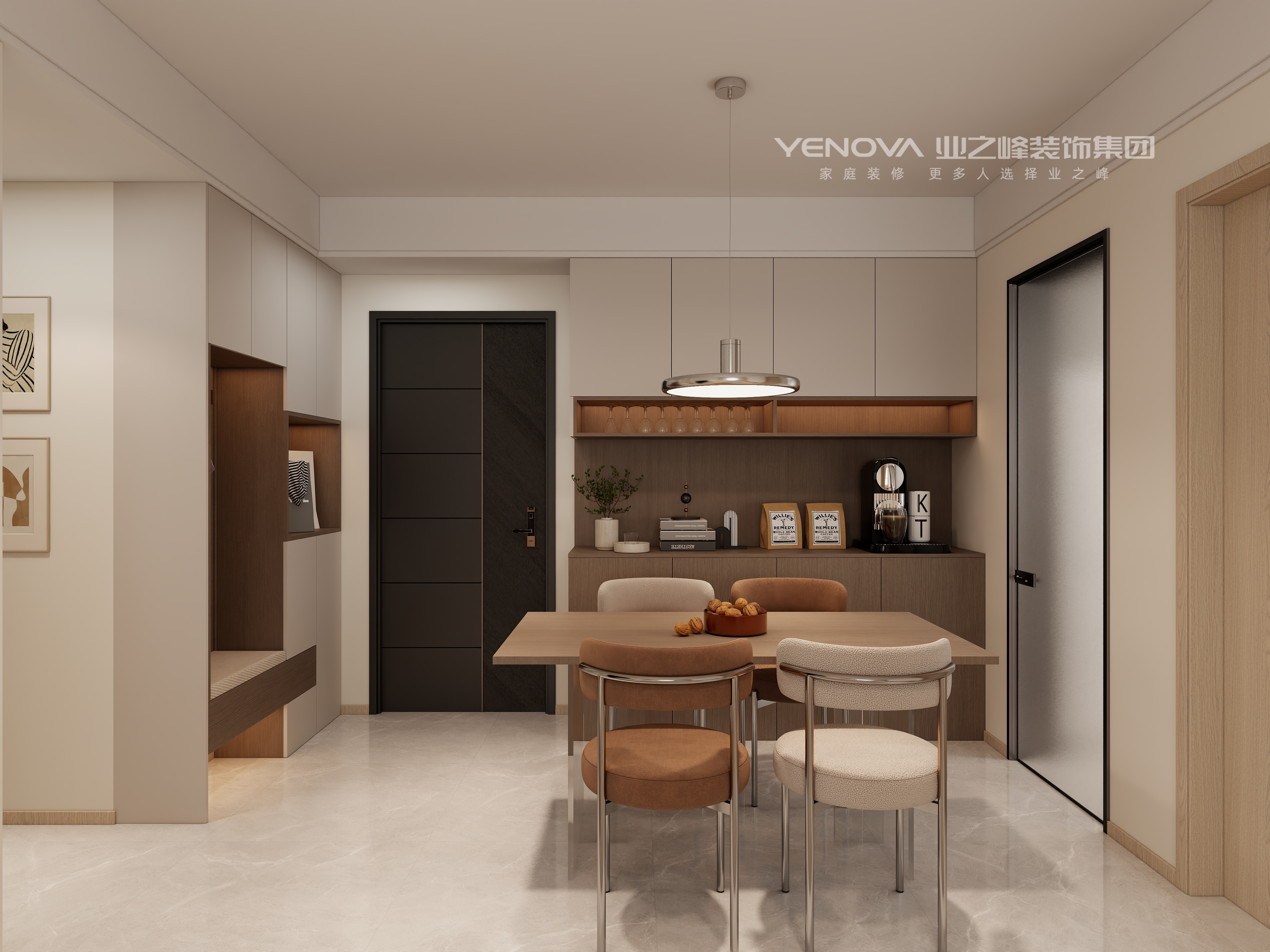 作为一对新人的婚房,本方案以年轻人的生活习惯为中心,多以暖色温馨为主,融合舒适质感与实用功能通过暖调色系、简洁线条及人性化布局,打造出一处温馨且极具品质感的理想居所,各空间既各司其职,又在风格与氛围上形成有机统一。
