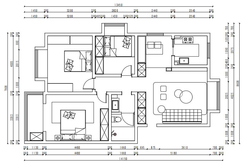 这套设计以现代简约风格为基底,融合复古温馨与自然质感,打造出兼具舒适与美学的居住空间。