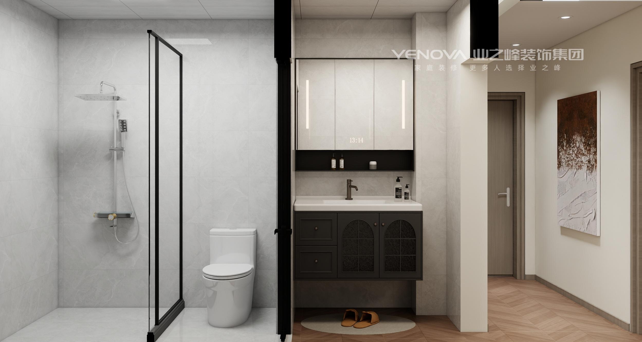 厨房以黑白木色的撞色搭配,呈现现代简约的利落感,同时木质橱柜的自然纹理为空间注入温馨气息。卧室则通过简约的整体布局,搭配复古风床头与艺术感挂画,营造出静谧且富有格调的休憩氛围。卫生间的现代卫浴设施与带复古细节的浴室柜结合,在简洁中暗藏设计巧思。