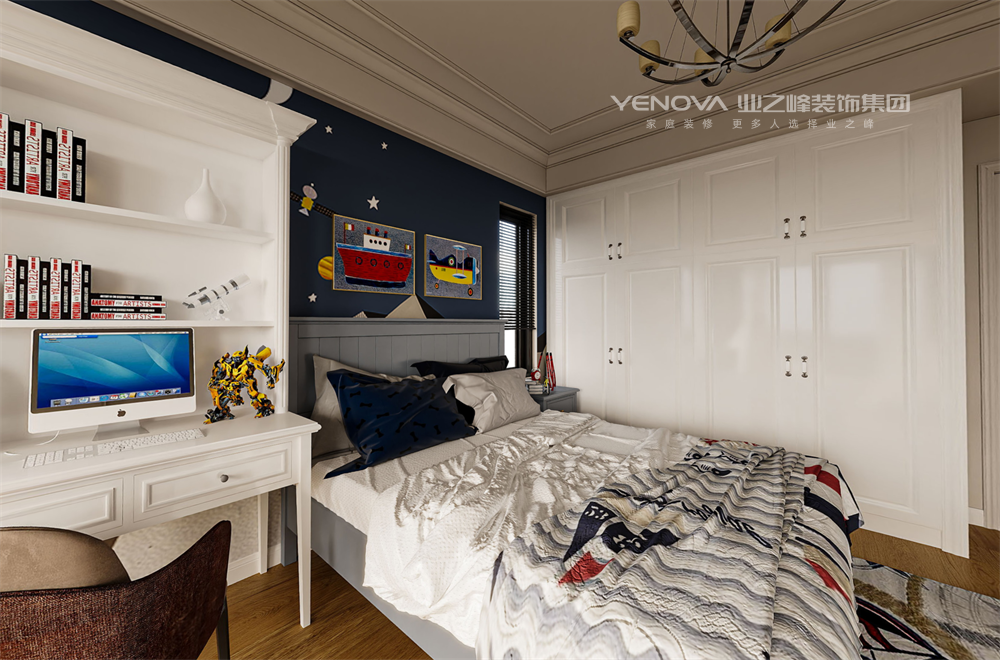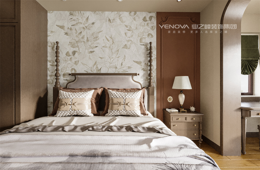 本案以美式复古为基调,通过深胡桃木家具的厚重质感与做旧工艺,勾勒出时光沉淀的温润轮廓;墙面采用米白护墙板搭配碎花壁纸,辅以黄铜壁灯与铁艺吊灯的暖光晕染,营造出温馨而富有故事感的居家氛围。