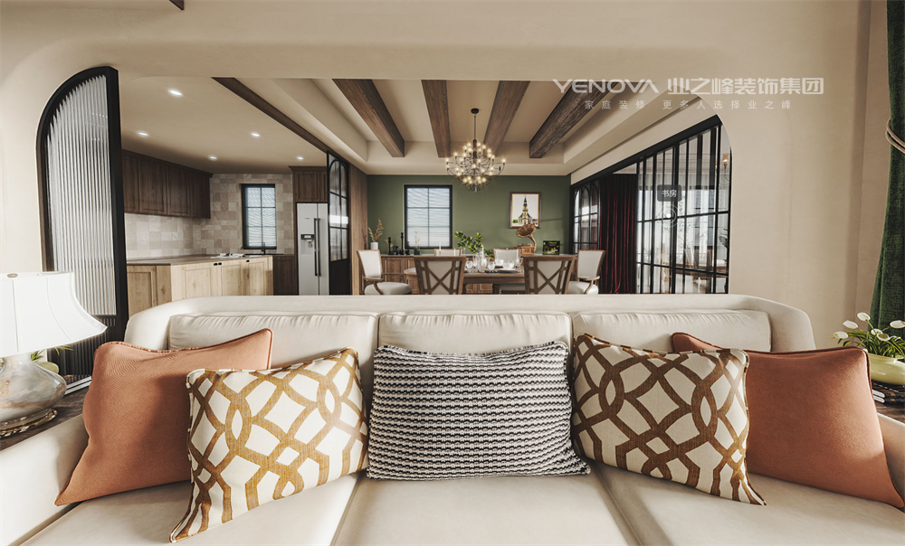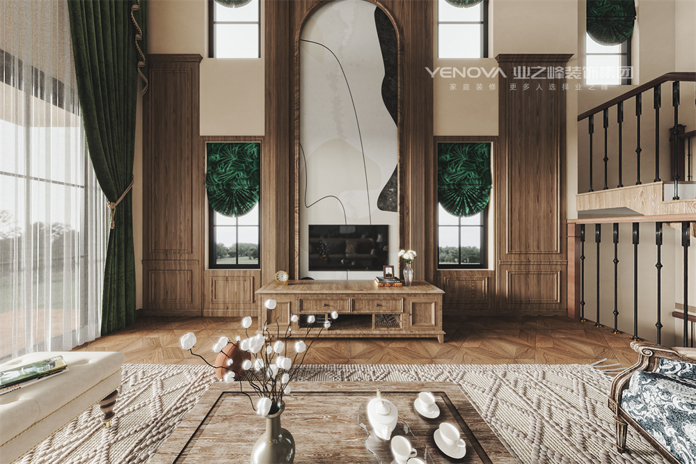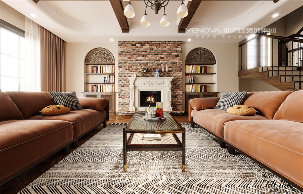开放式布局打破隔断,让客厅、餐厅与厨房形成互动场域,壁炉成为情感纽带,既保留古典韵味,又满足现代家庭对舒适与功能的需求,最终呈现一个充满怀旧情怀却不过时、兼具烟火气与艺术感的理想居所。
