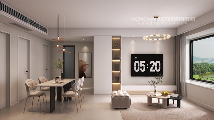 奶油风整体空间硬装,要简单干净利落,软装要温馨,色调统一,质感细腻,用轻盈的颜色和材质打造出一个舒适、放松的居住空间。