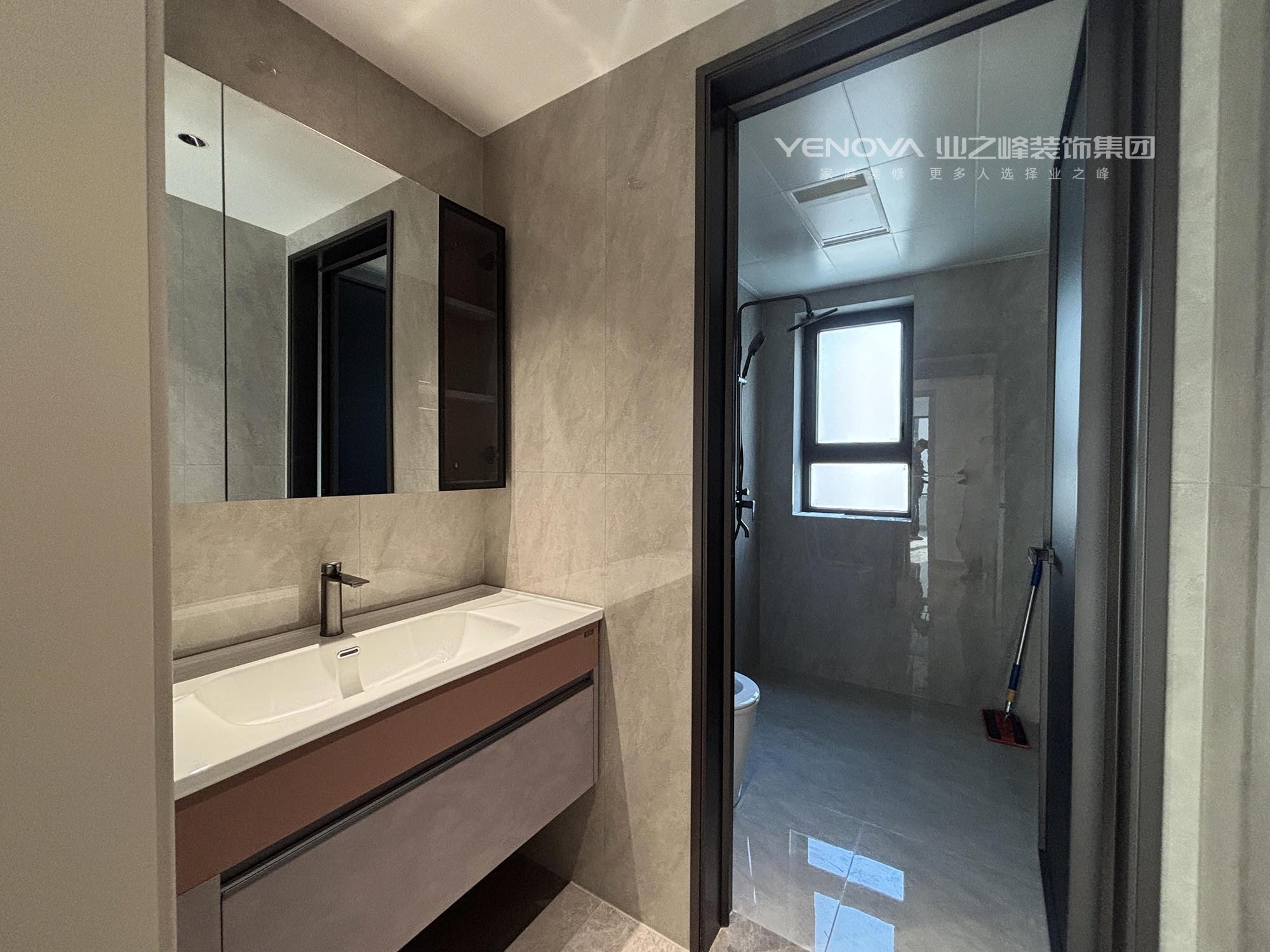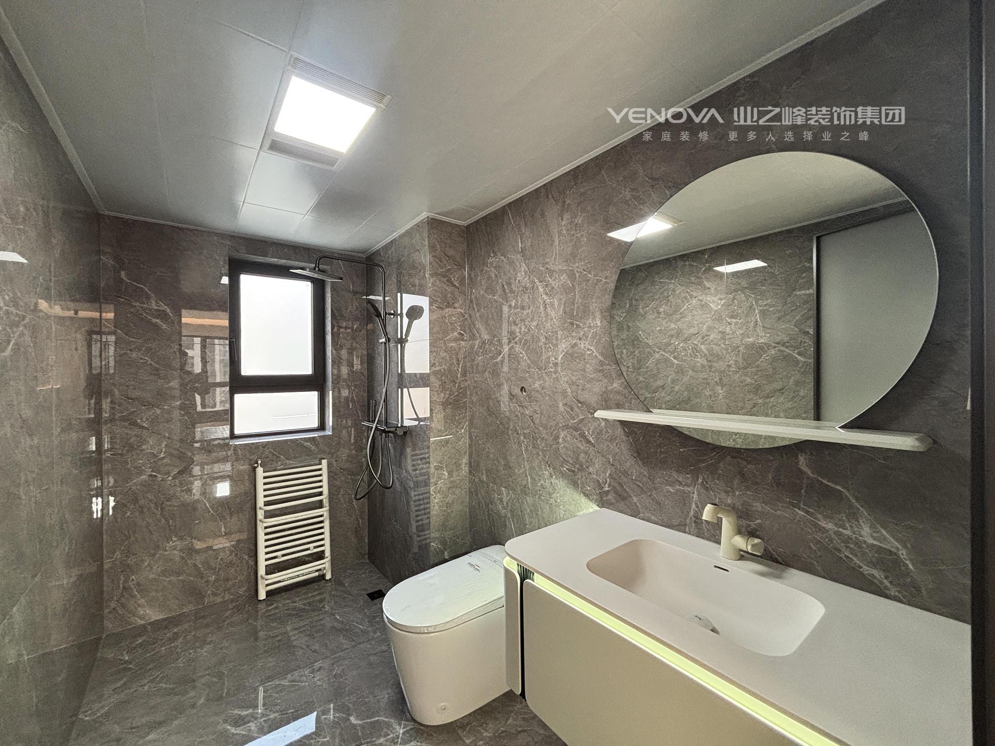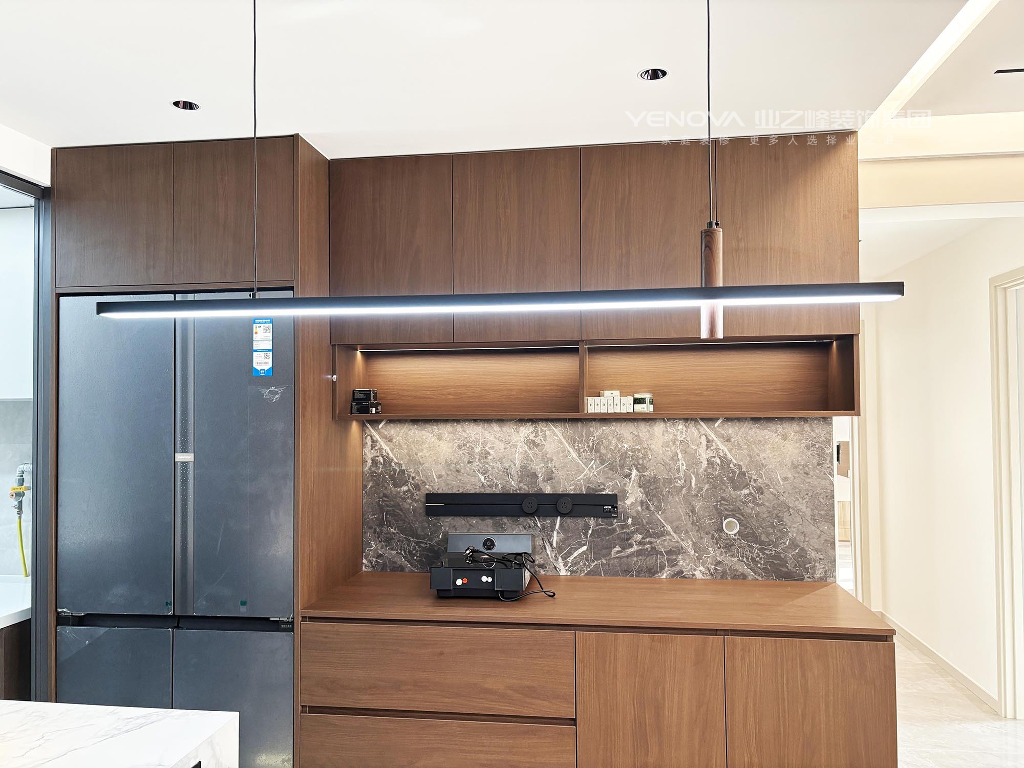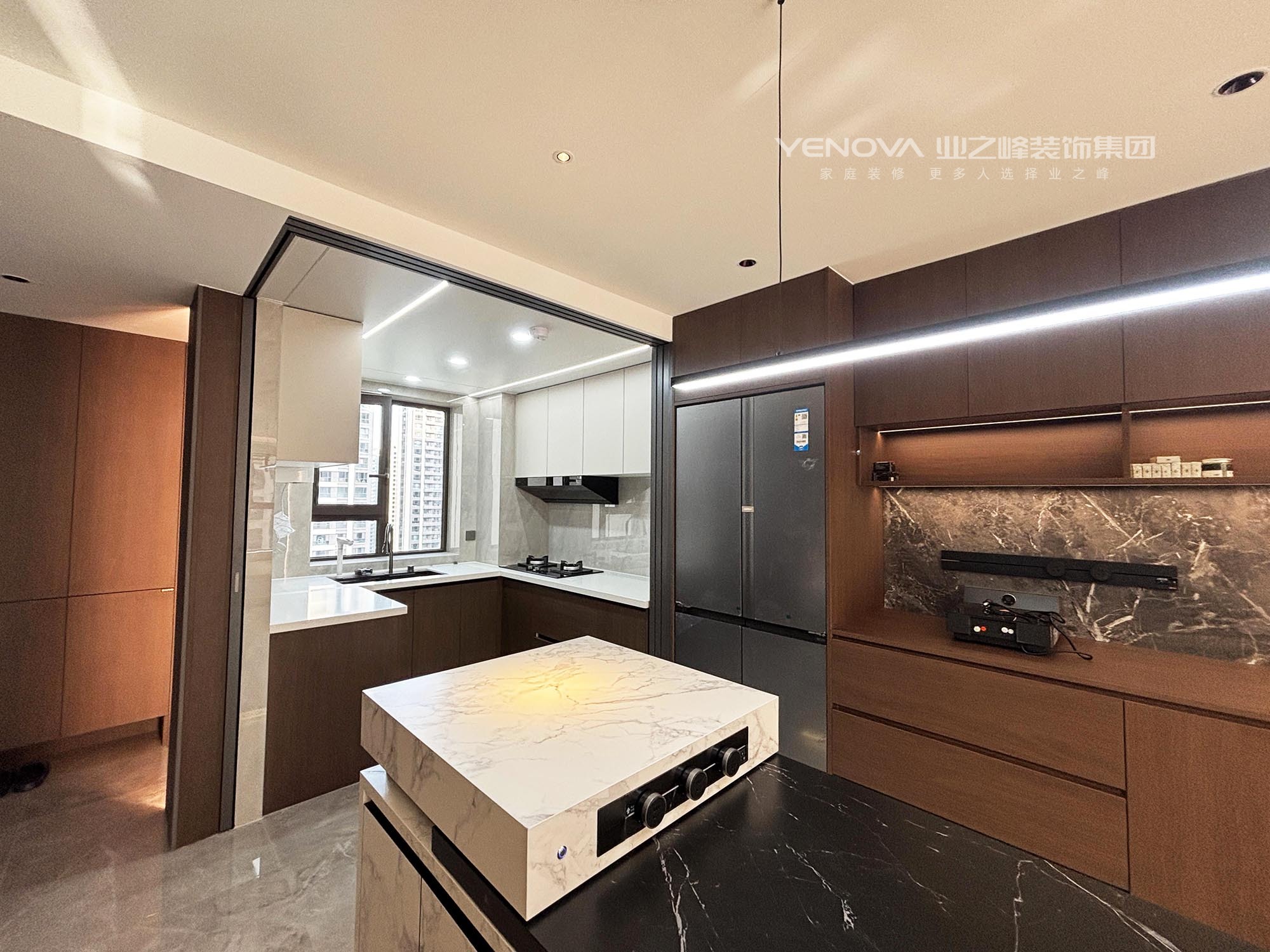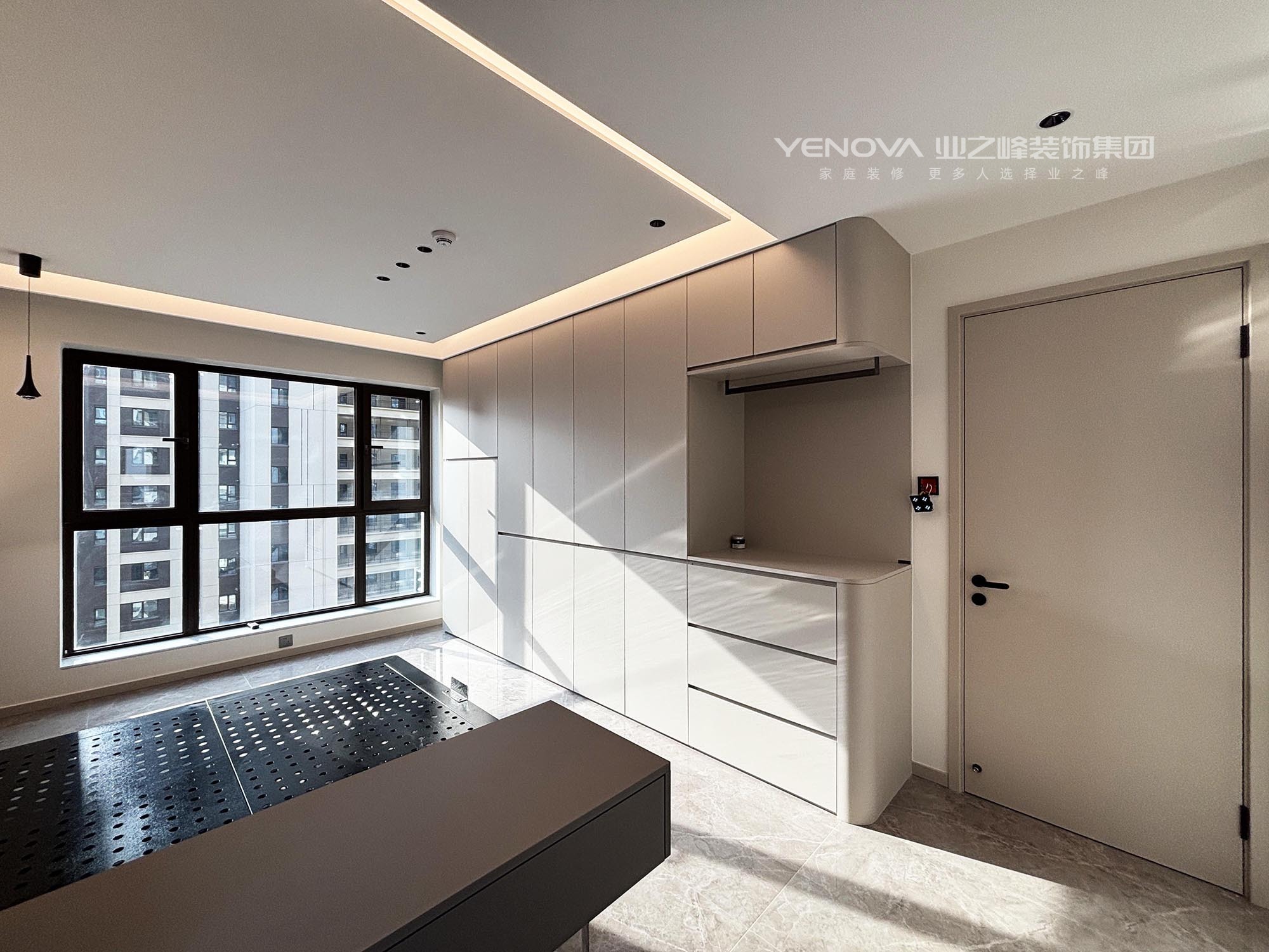 这是一套实景落地拍摄,卧室定制衣柜嵌入墙体,营造整洁静谧氛围;全屋以米灰、深棕为基调,搭配大理石、玻璃等材质,在极简形态中尽显意式美学的高级质感与生活温度。