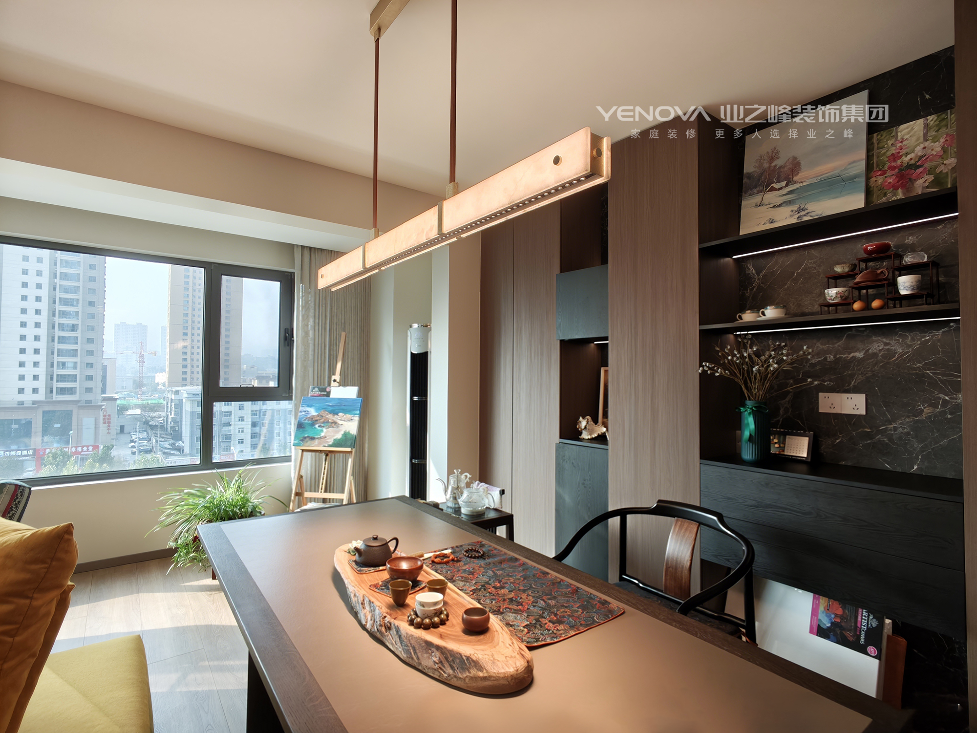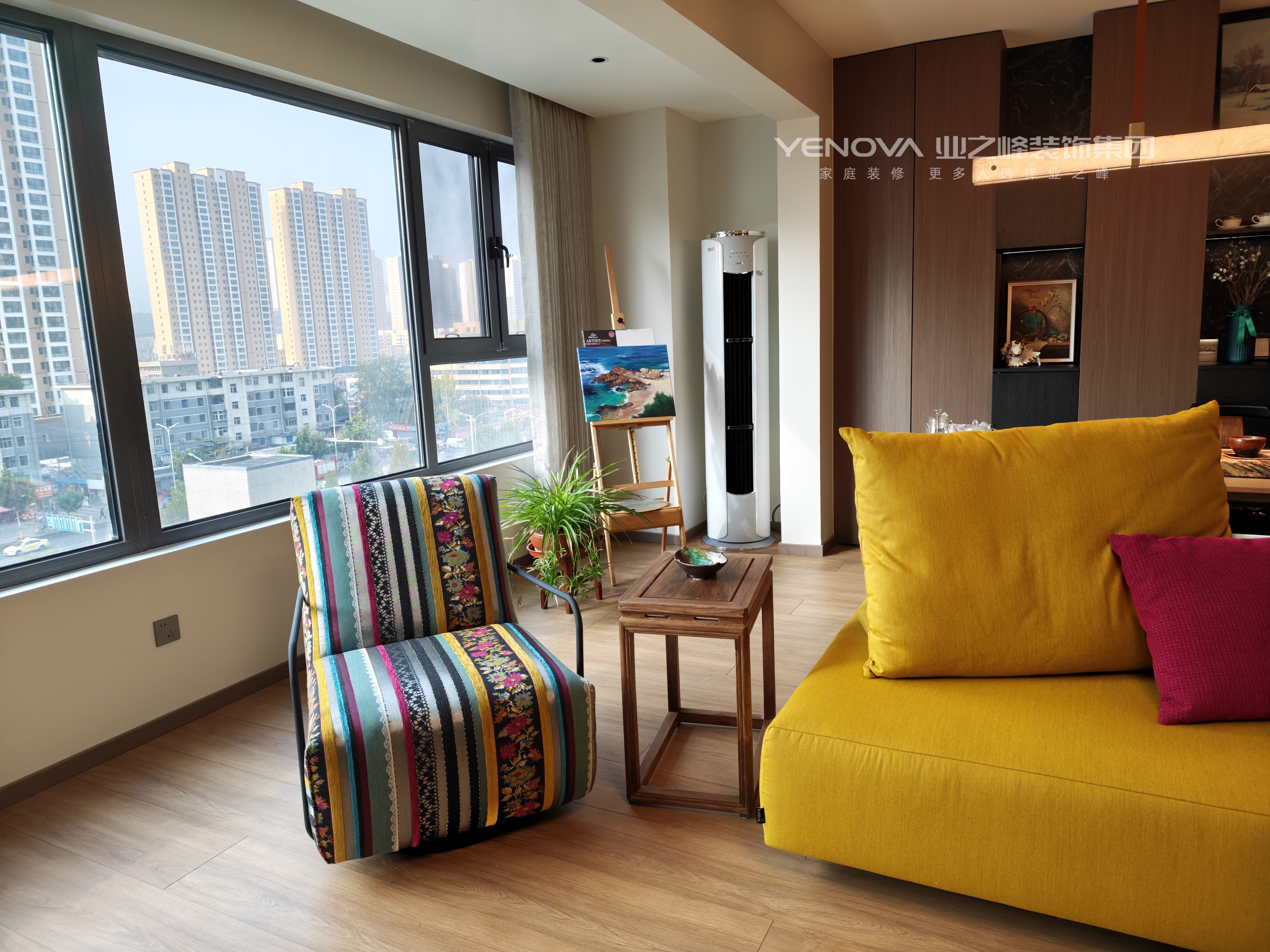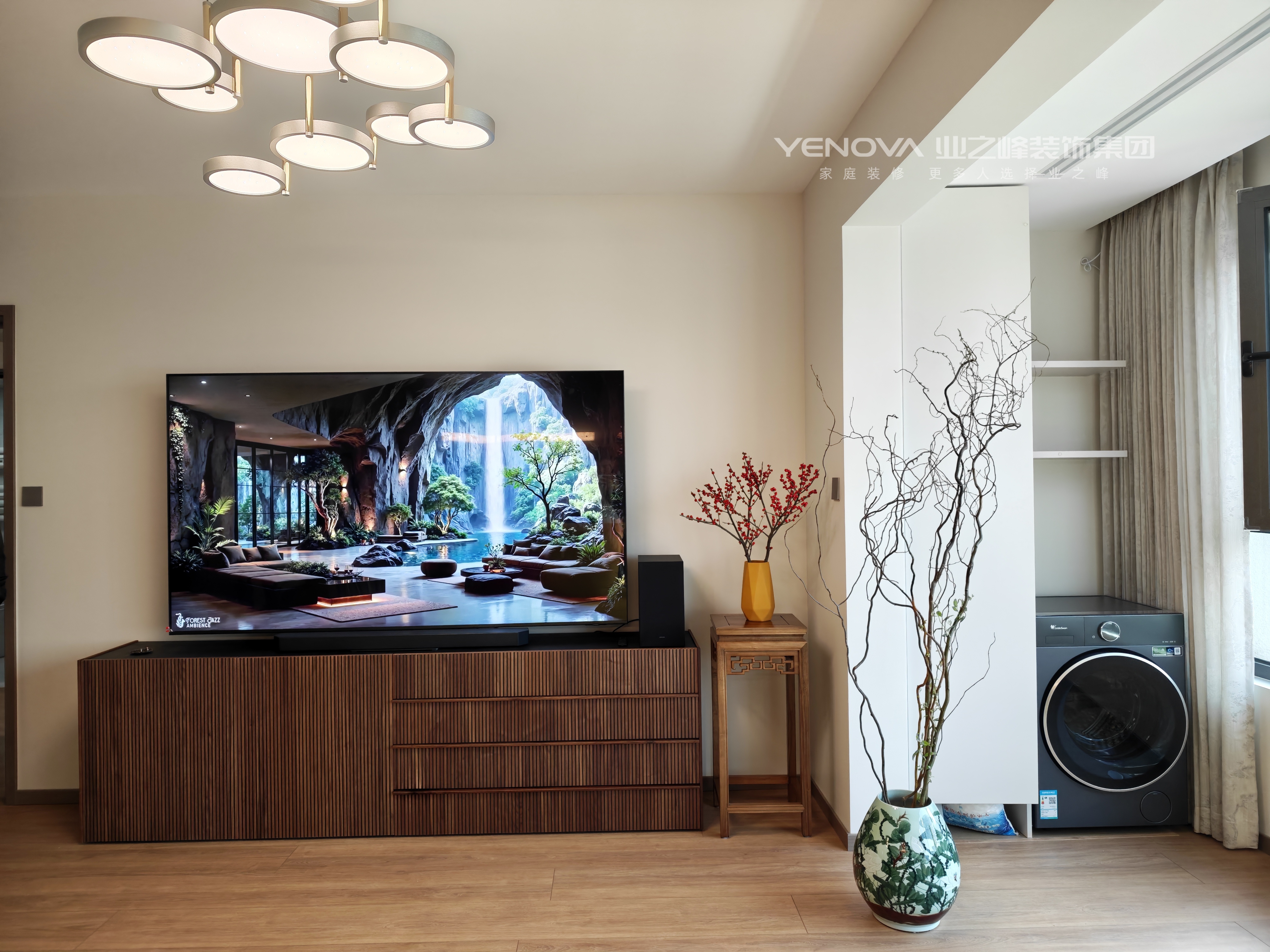 保利天汇 140㎡混搭风,融合新中式、现代与复古元素,以木质肌理、多元色彩和艺术软装,打造个性且和谐的居住空间。