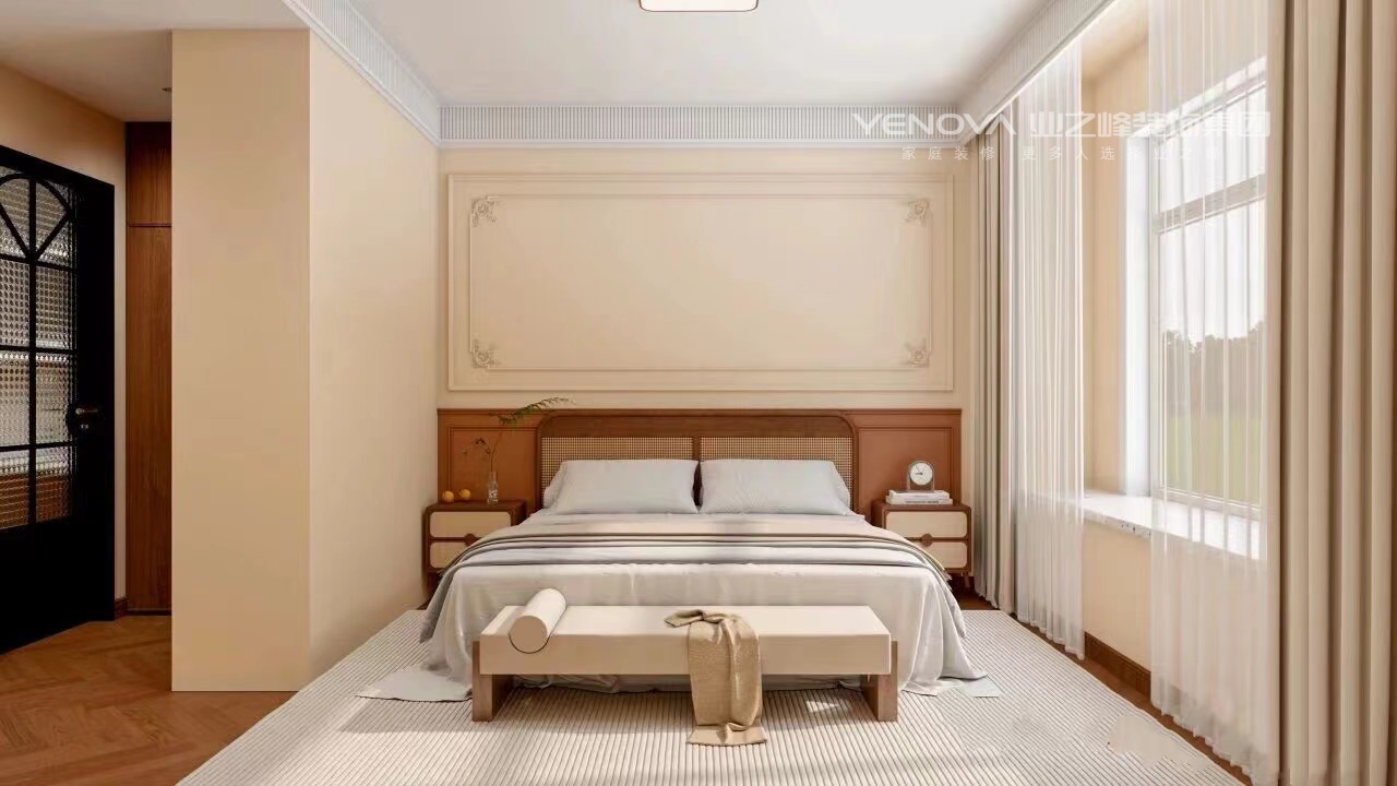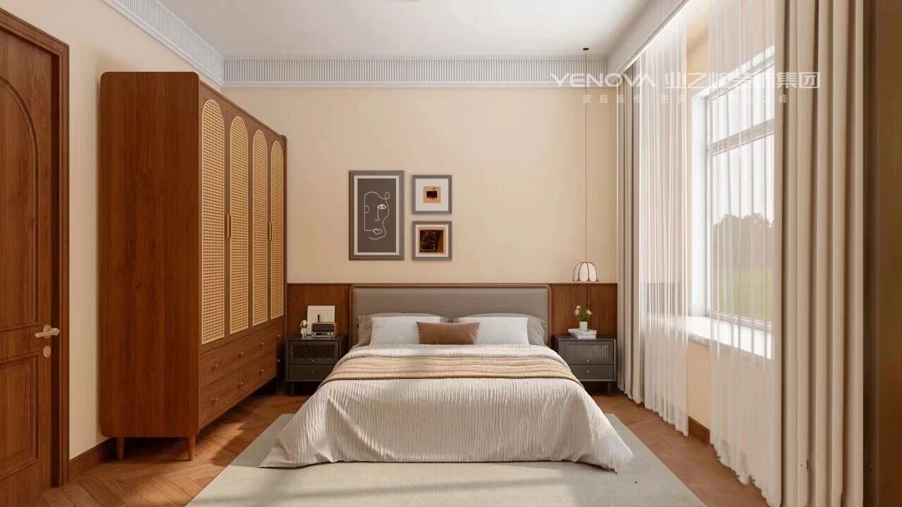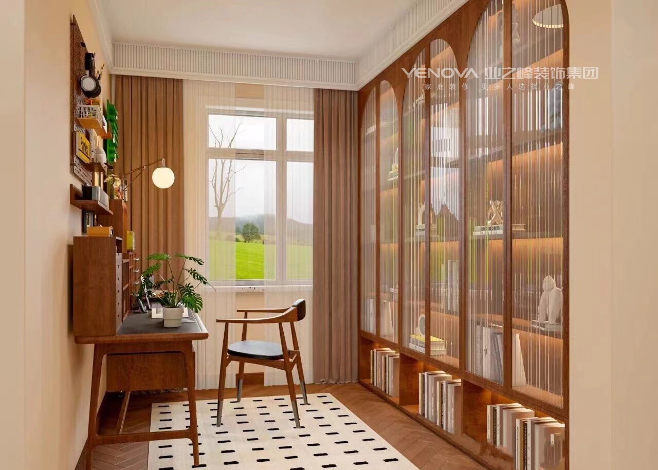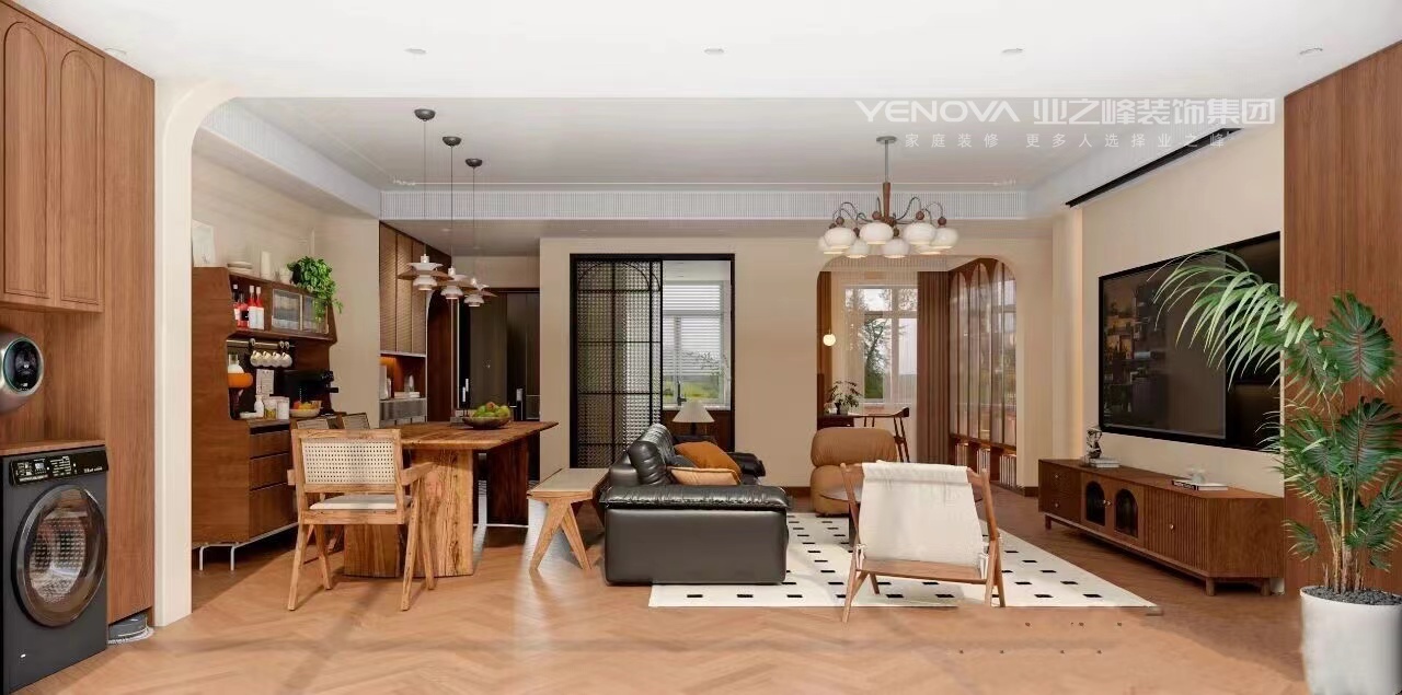 中古风用色最大的特点,就是大胆且沉稳。之所以说大胆,是因为色彩多、面积大,大批量采用活泼生动的色彩,敢于用色以及难度较高的撞色搭配。之所以说沉稳,是因为采用的都是高纯度偏暖的色调,给人一种安稳、沉静的视觉感受。在本案中,温润的中古风,恰如其分地融合了岁月的质感与生活的温度。在空间里找到平衡点,让木质肌理与暖调灯光交叠出静谧氛围,让每一件生活小事都被时光记住