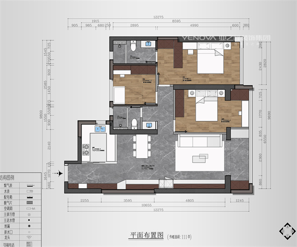 小区:武汉润府 面积:111㎡ 户型:三居 风格:中古风格