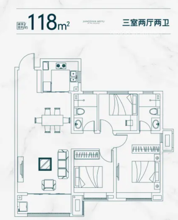 小区:江山美域 面积:118㎡ 户型:三居 风格:现代简约风格