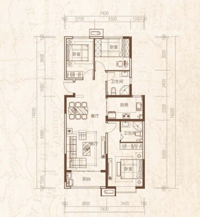 小区:紫东国际 面积:122㎡ 户型:三居 风格:现代简约风格