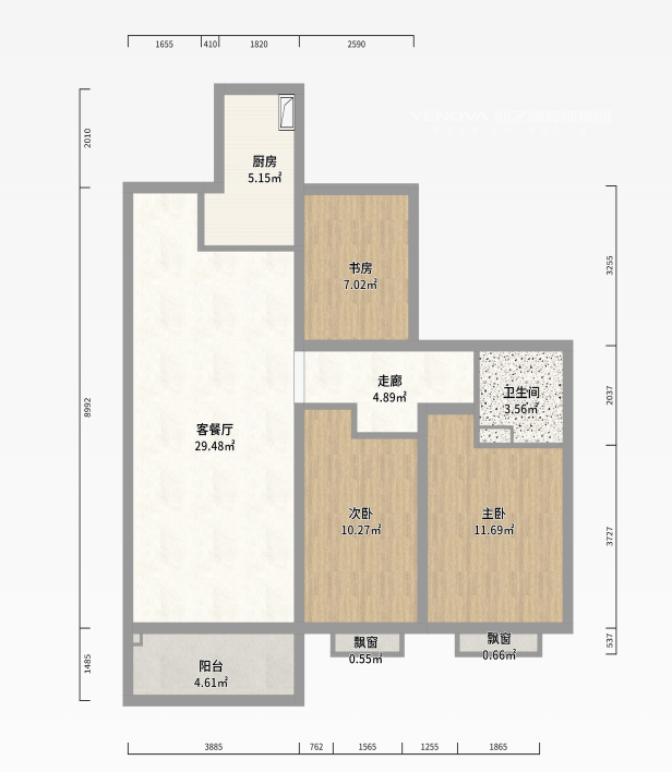 小区:文汇佳苑 面积:96㎡ 户型:二居 风格:奶油风格