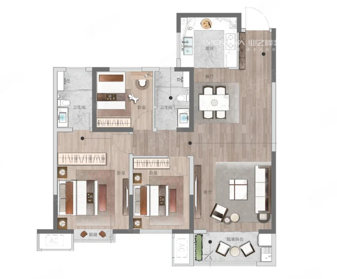 小区:天誉铭都 面积:120㎡ 户型:三居 风格:现代简约风格