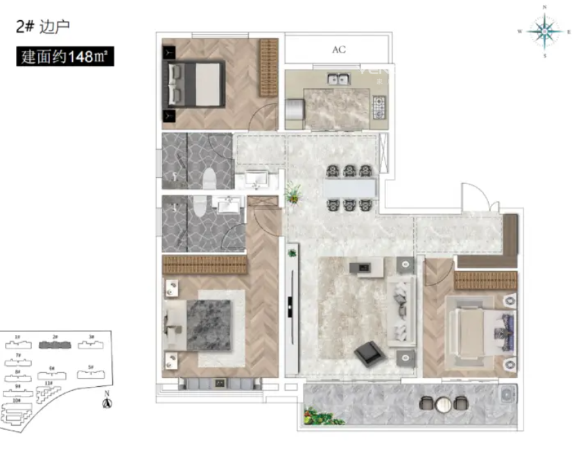 小区:浩翔云玺 面积:148㎡ 户型:三居 风格:宋氏美学