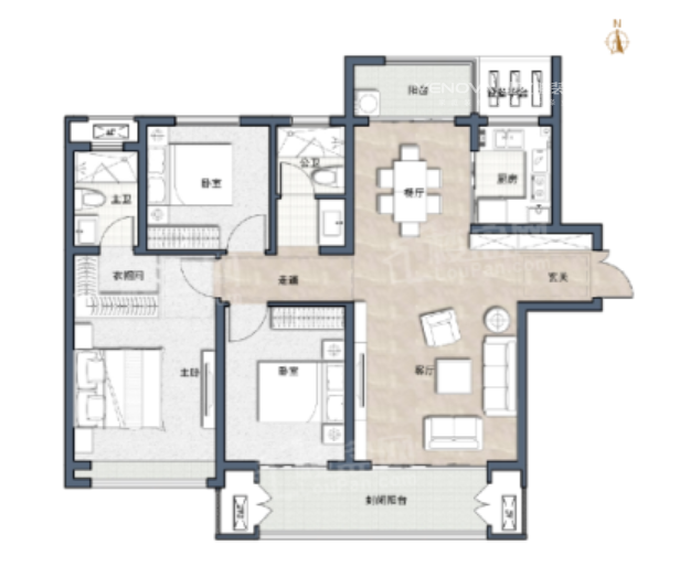 小区:晋福苑 面积:128㎡ 户型:三居 风格:奶油风格