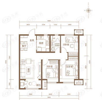 小区:保利和光尘樾 面积:100㎡ 户型:三居 风格:中古风格