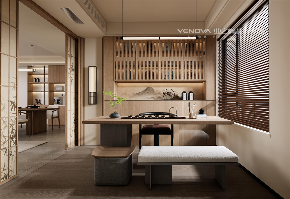 大量运用实木、布艺、石材等天然材质,搭配中式雕花、格栅等元素。家具选用线条简洁的新中式款式,软装搭配中式挂画、陶瓷摆件与绿植,凸显传统韵味与自然气息。