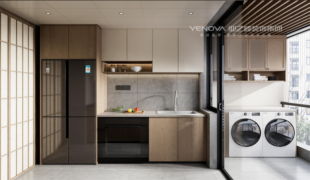 门窗采用中式格栅造型,搭配黑色金属把手点缀。吊顶与墙面交接处采用简约线条修饰,避免复杂造型。软装方面,选用棉麻质感窗帘与中式纹样抱枕,提升空间精致度。
