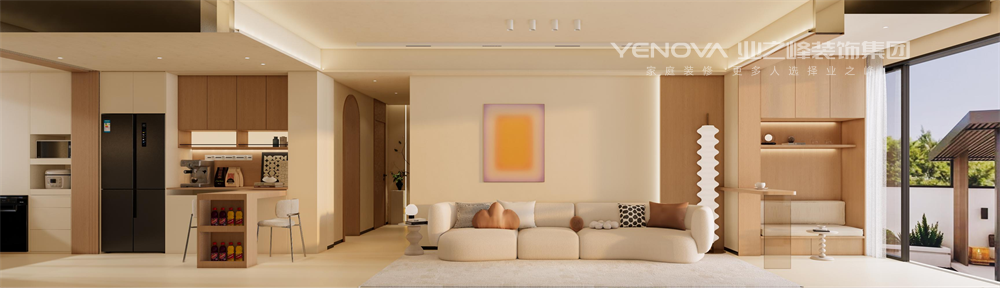 设计摒弃繁杂装饰,以 “少即是多” 为原则,用简洁流畅的线条勾勒空间轮廓,搭配浅白、原木色等温润基色调,局部以低饱和度亮色点缀,营造通透清爽且不失温度的视觉感受。客餐厅采用一体化布局,通过顶面简约吊顶自然划分功能区域,动线流畅开阔,满足日常互动与用餐需求。