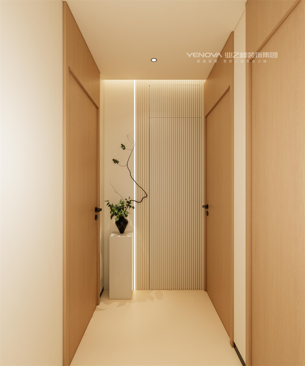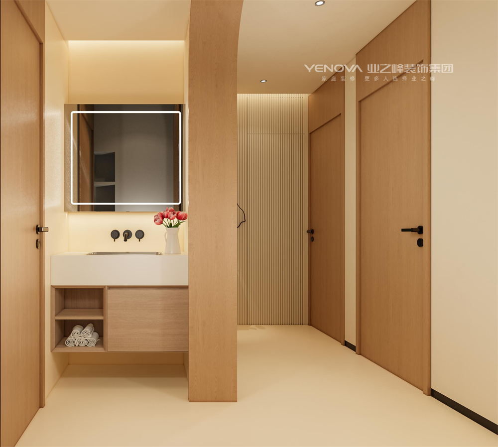 两间卧室功能明确,主卧侧重静谧休憩氛围,简化造型突出舒适感;次卧根据居住需求灵活规划,可兼顾储物与临时办公功能。全屋强化收纳系统,通过定制柜体最大化利用空间,减少视觉杂乱。整体设计以专业经验平衡美观与实用,适配现代生活节奏,为居者打造一个简约而不简单、舒适且自在的理想居住空间。与温度的简约宜居空间