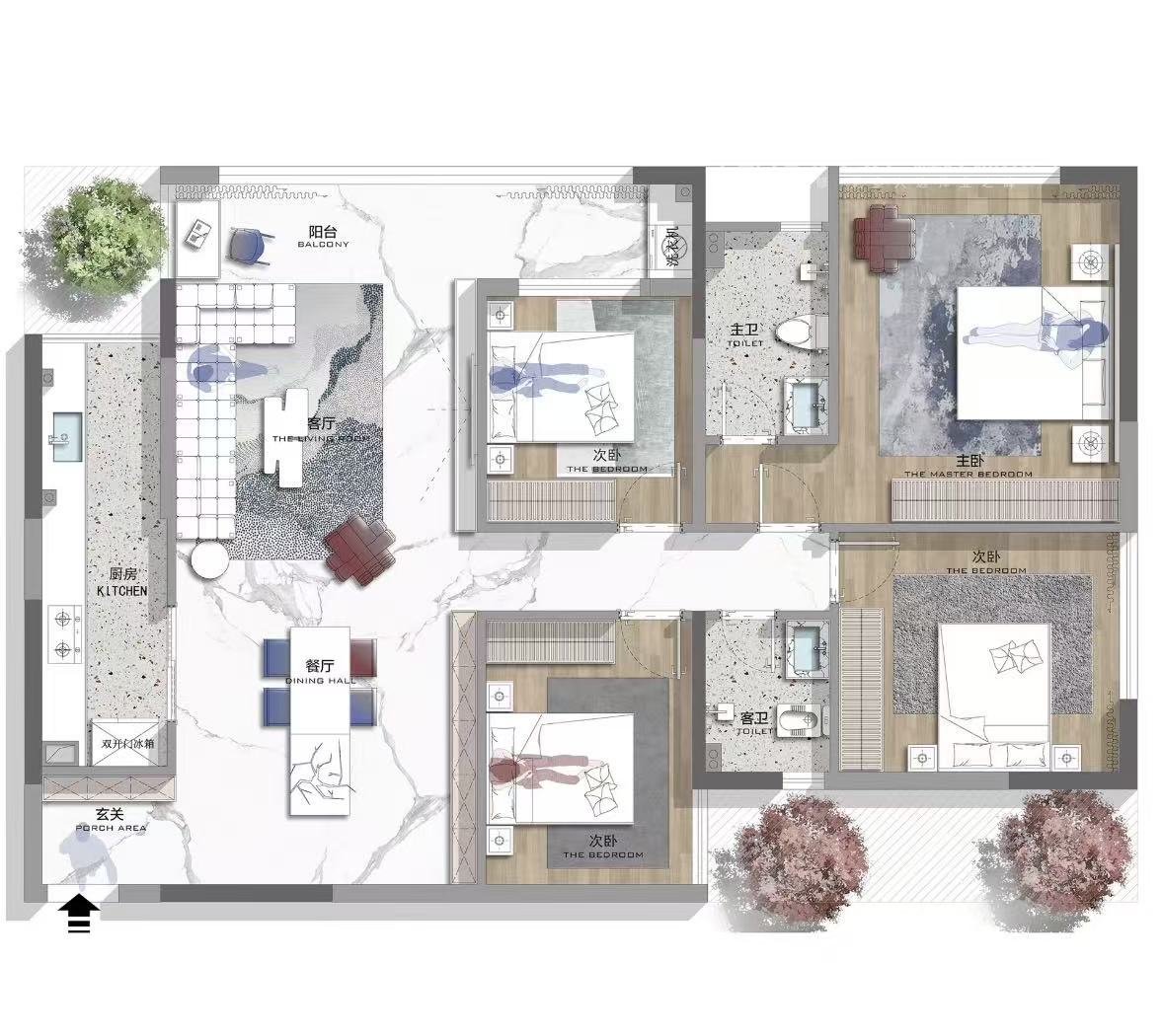 小区:融创九坤 面积:108㎡ 户型:三居 风格:现代简约风格