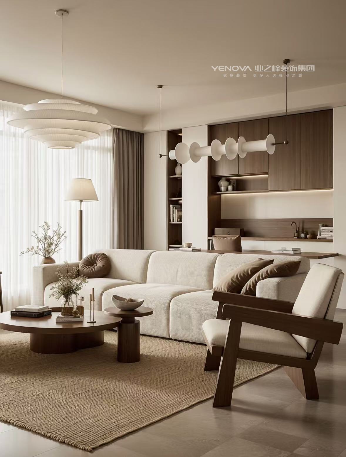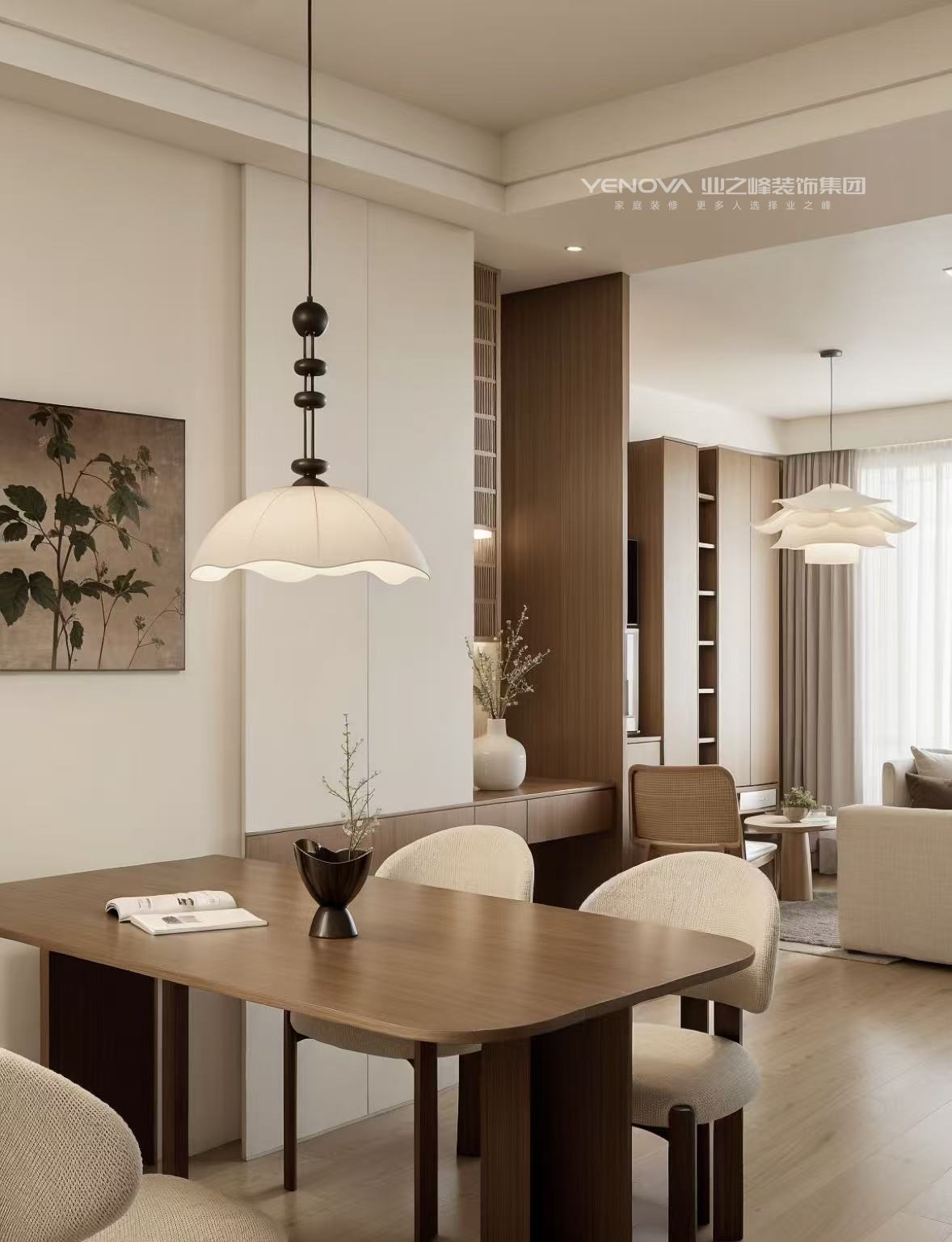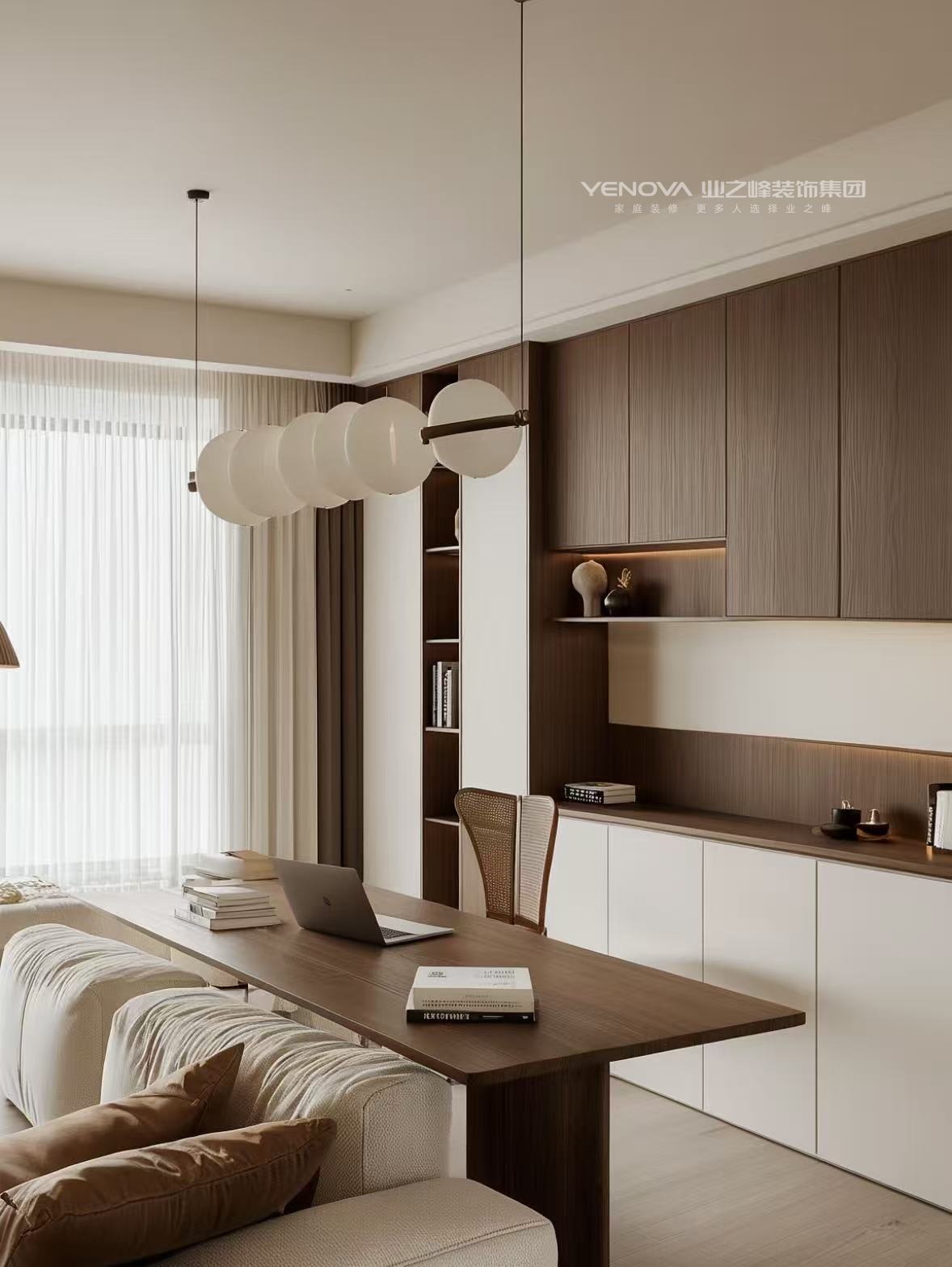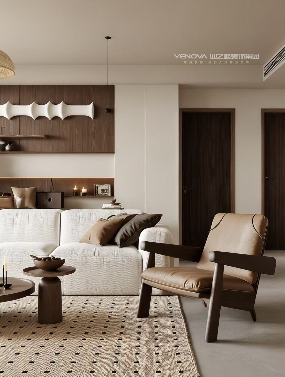 整体乳胶漆色调选择胡桃木,突破常规的简约白,营造家的温暖幸福又增加氛围感。同时定制柜选用奶酪白,衬托房子温馨感的同时,又不失定制柜的美感。家具软装选用浅色系的搭配,整体提升家的整洁度温馨感。