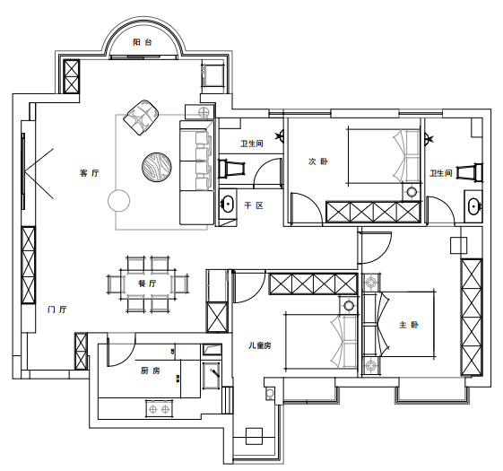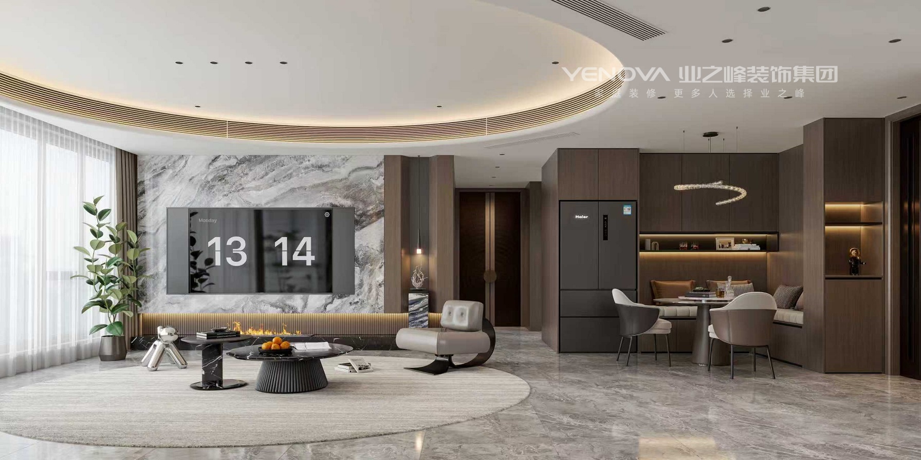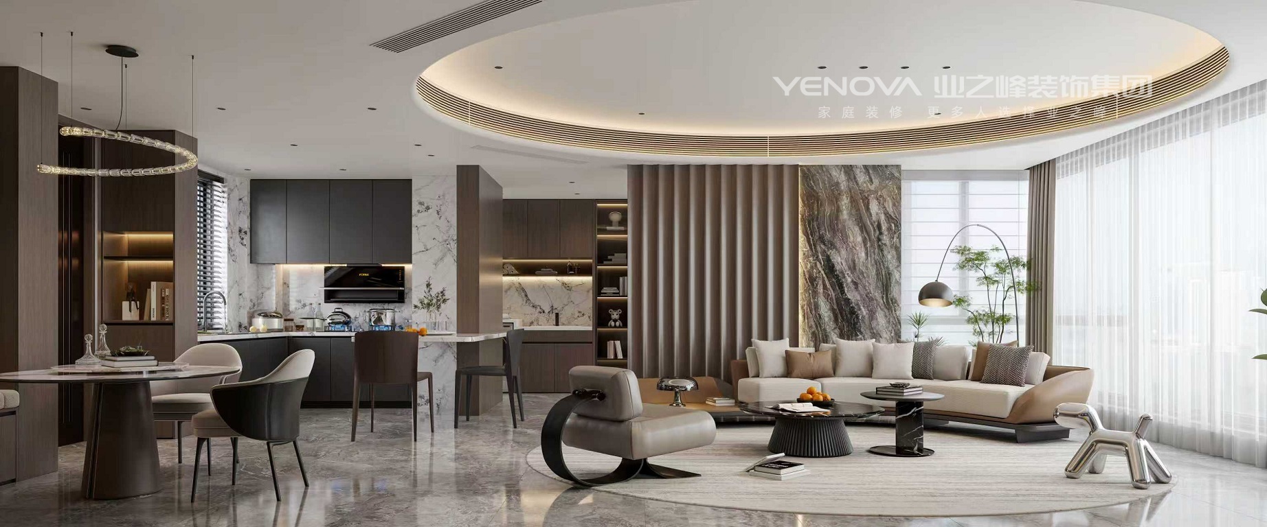 本案设计定位为120平意式轻奢风格住宅,整体以理性克制的现代格局为骨架,融入意式的奢华与细节。色彩上,主打高级中性色:高级灰、奶油白与深邃黑构成基调,局部点缀金属、玻璃或皮具的亮色,营造视觉焦点。材质是灵魂:天然石材、温润皮革与金属、镜面碰撞,形成丰富的层次感与质感对比。家具造型简洁而优雅,线条利落,打造一个兼具国际视野、奢华质感与舒适体验的现代居所。无主灯照明营造温馨氛围,通过简洁线条与实用布局,打造舒适且具时尚感的居住环境 。