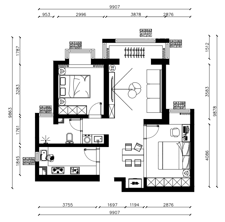 小区:九鼎城 面积:90㎡ 户型:二居 风格:现代简约风格
