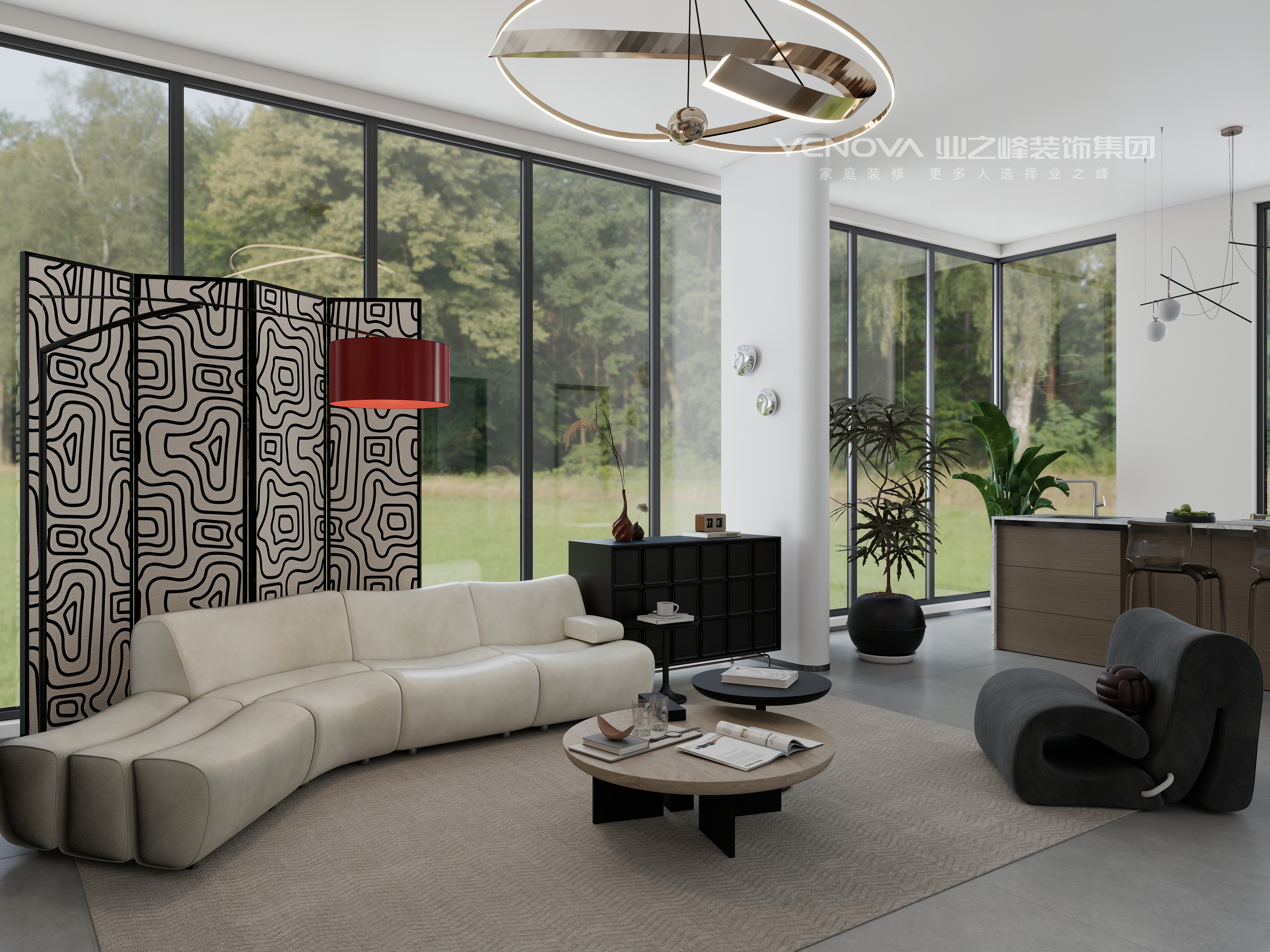 - 动区(社交+功能):分布于户型中东部,包含复合客厅(沙发+休闲坐区)、开放式餐厨(厨房+餐厅)、多功能休闲区(含绿植景观)、独立书房。其中,客厅与休闲区连通,形成“社交核心区”;餐厨区紧邻入户动线,便于食材搬运与餐后整理;书房配置书桌+休闲椅,兼顾办公与阅读功能。