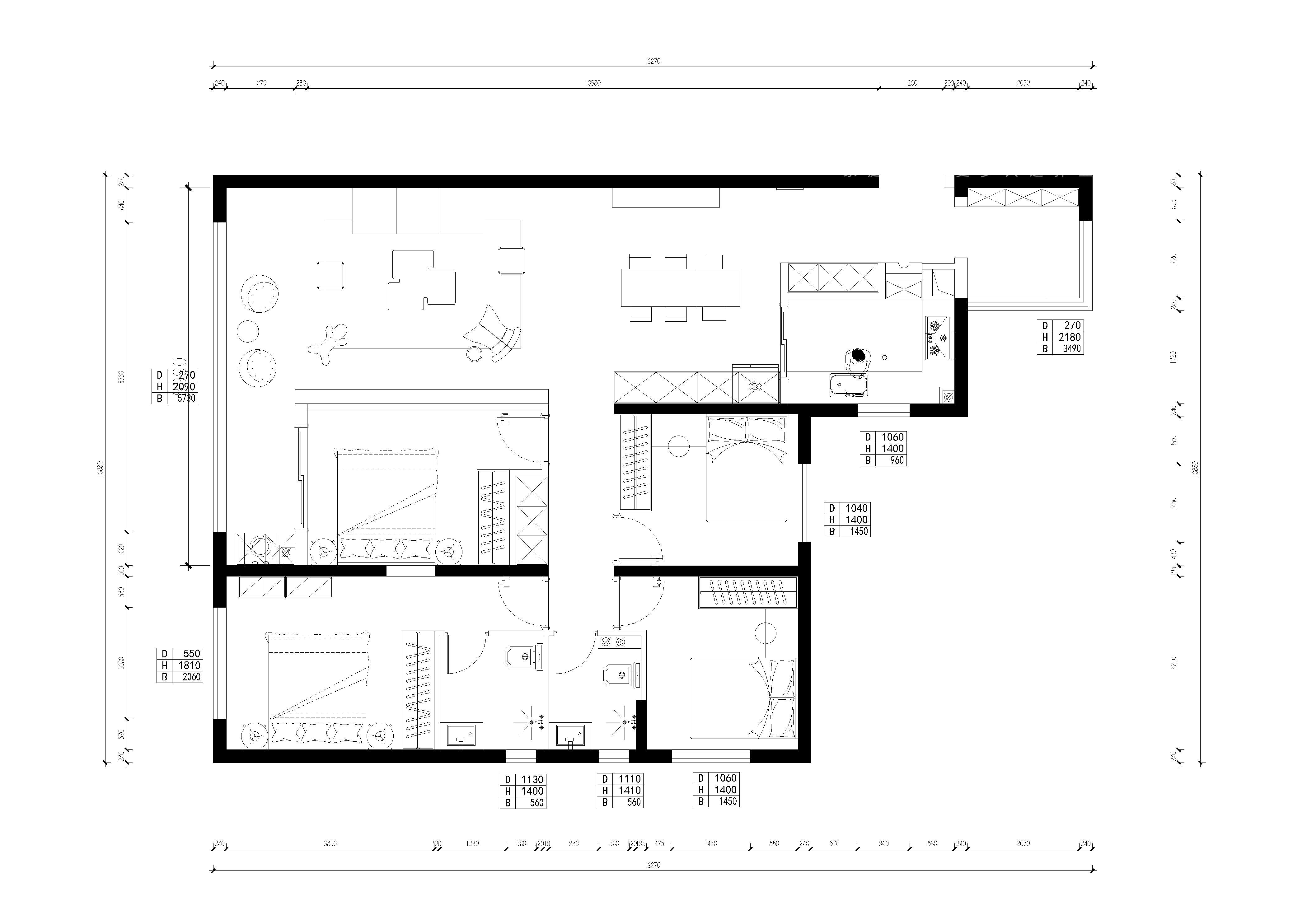 小区:雍景里 面积:143㎡ 户型:三居 风格:现代简约风格
