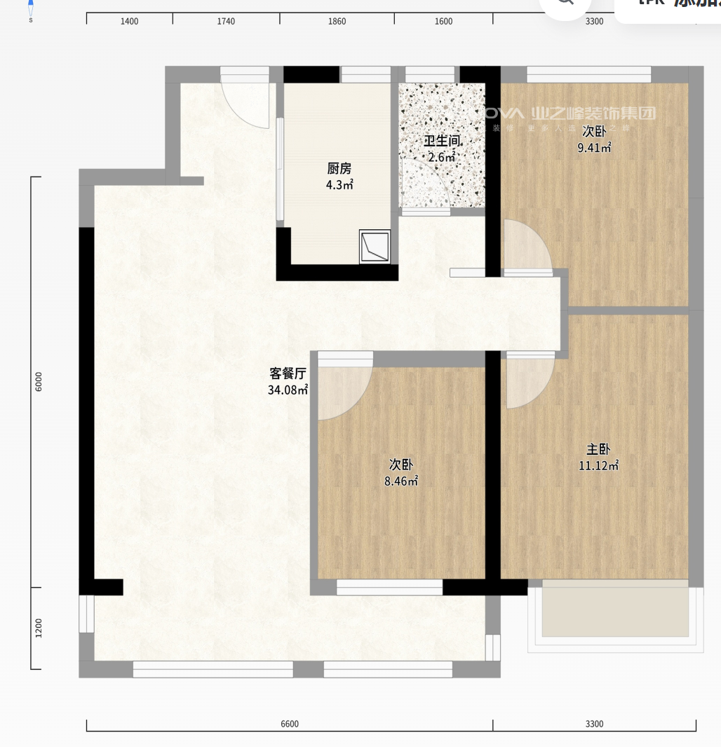 小区:绿地花都 面积:90㎡ 户型:二居 风格:现代简约风格