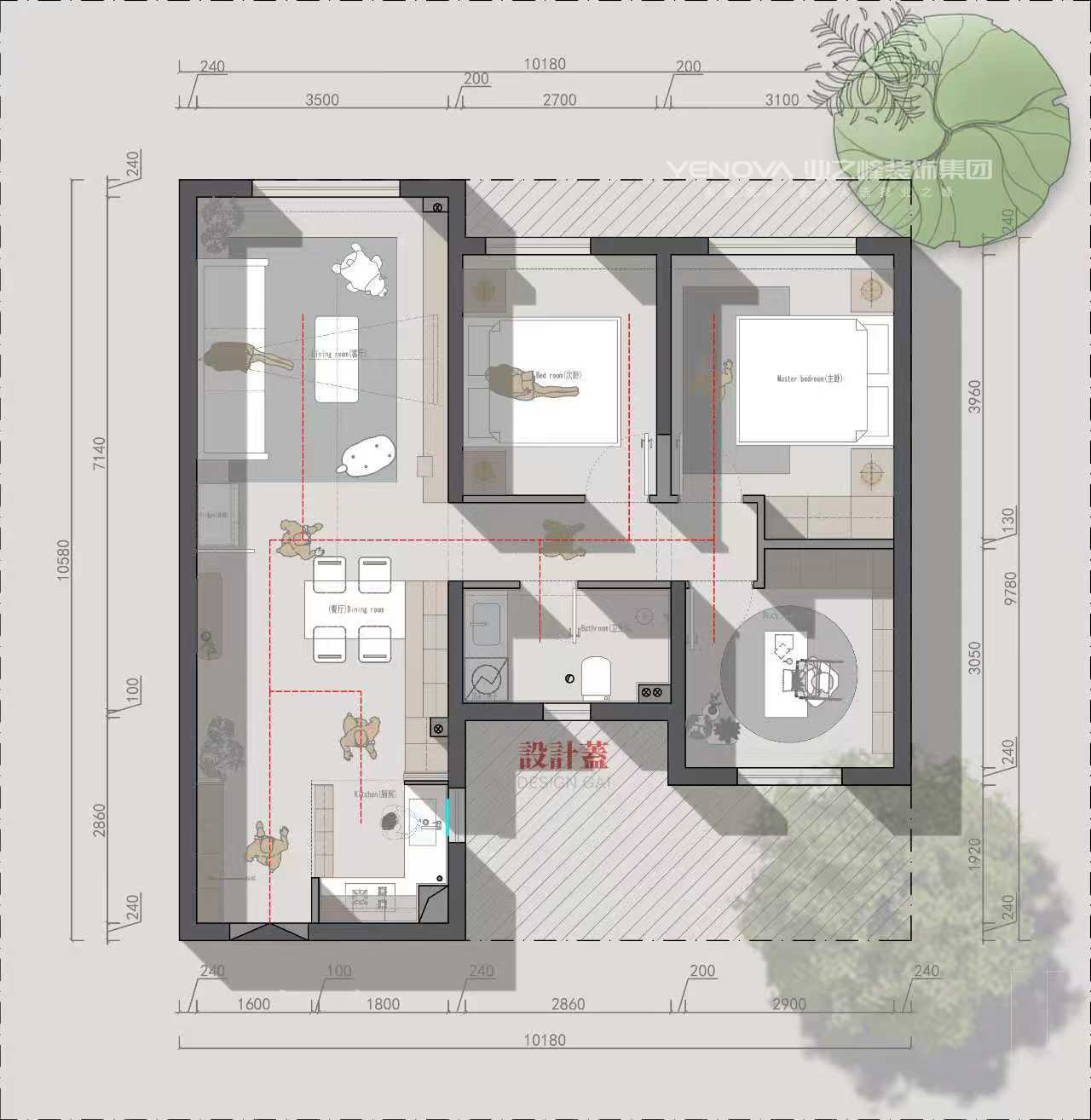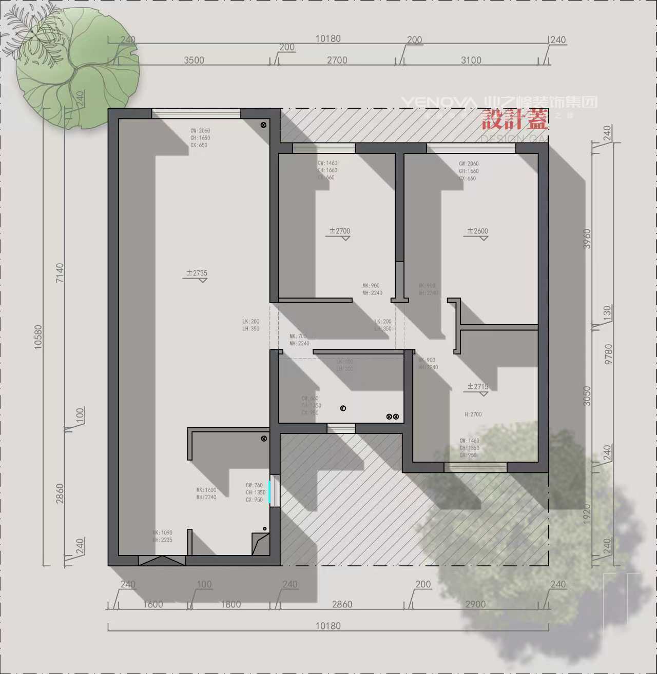 小区:龙湖天璞 面积:98㎡ 户型:二居 风格:中古风格
