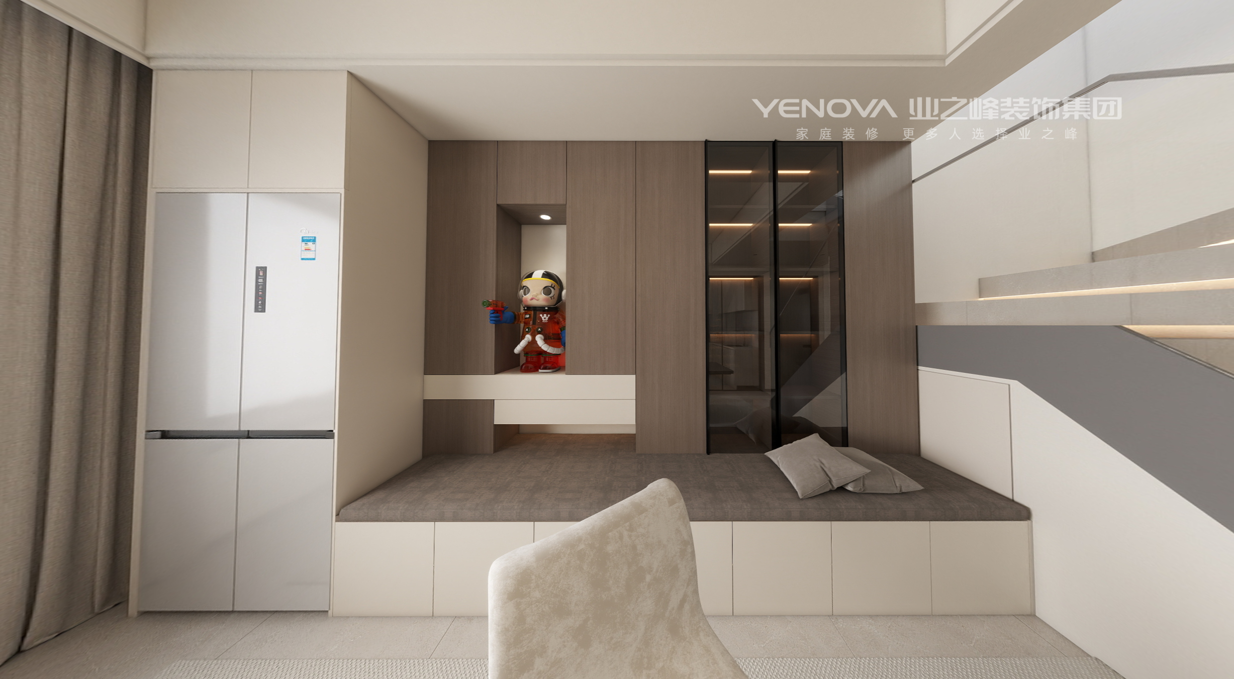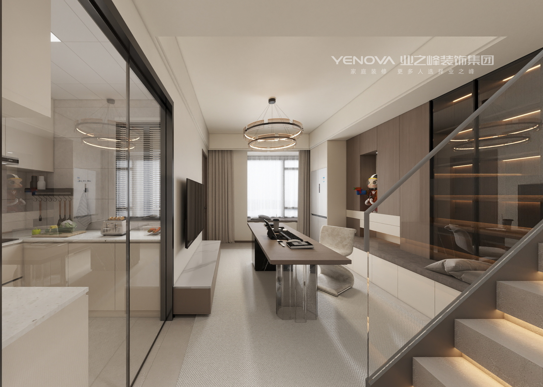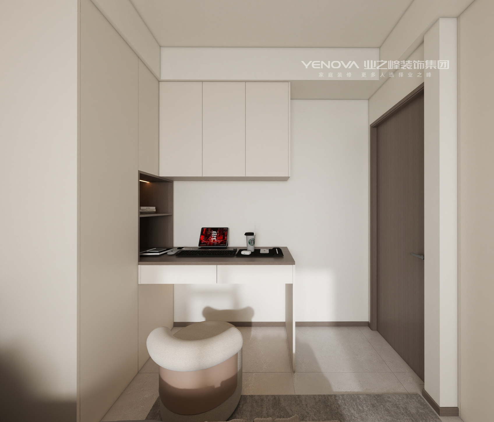 空间以米白、深灰为基调,客厅简洁布局搭配艺术灯具,尽显现代简约格调;书房嵌入式设计兼顾工作与收纳,营造静谧办公氛围;卧室简约软装与柜体结合,呈现舒适休憩场景。全屋通过简洁设计语言、合理功能规划,在 90㎡内实现现代简约的时尚质感与生活功能的融合,每一处细节都彰显利落雅致的居住美学,为居者呈现出线条干净、氛围舒适的现代家居空间。