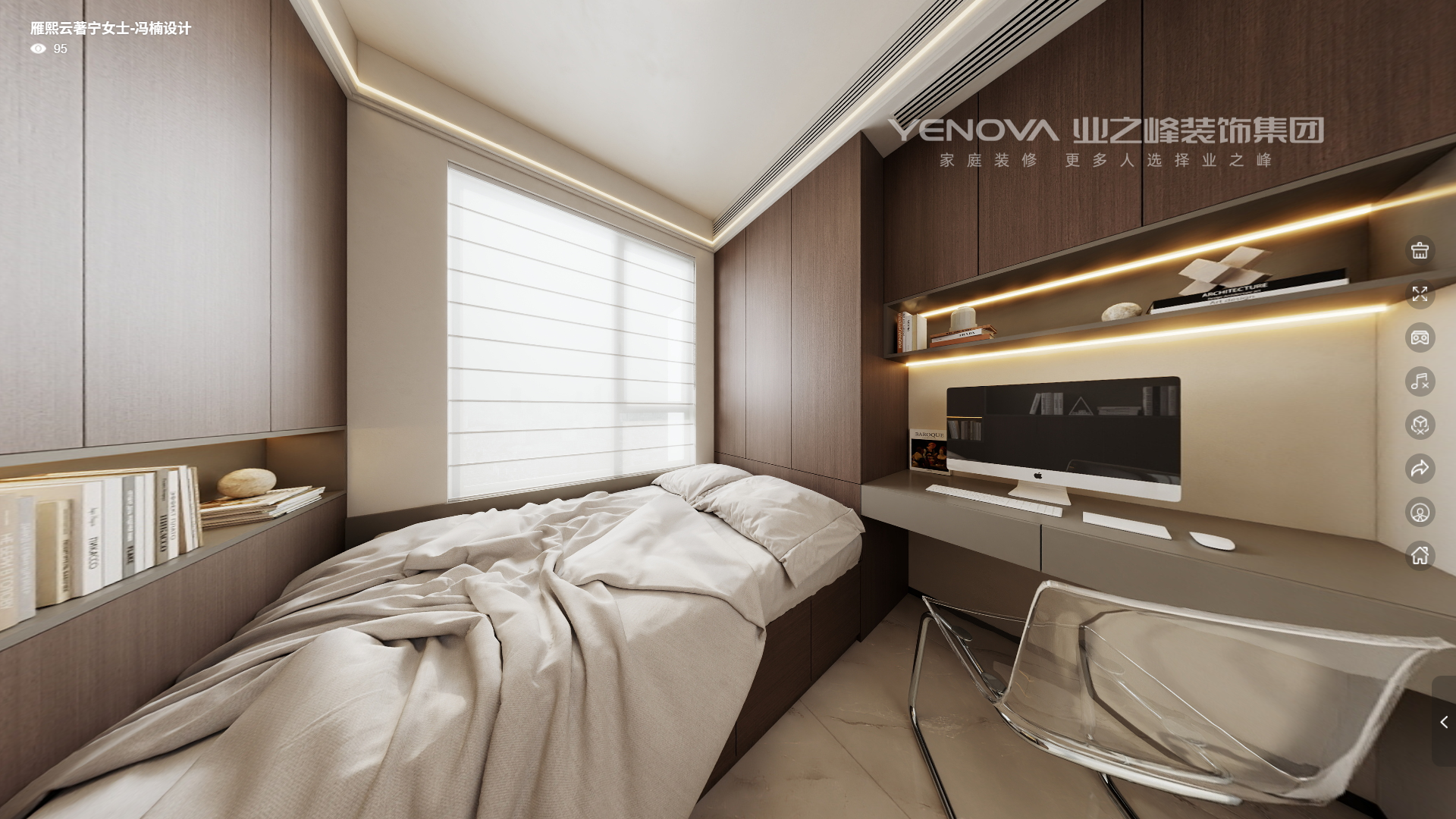 • 空间布局:客餐厨一体化设计,弱化空间边界;卧室、书房采用嵌入式柜体+功能区整合(如书房床柜一体),最大化利用空间。